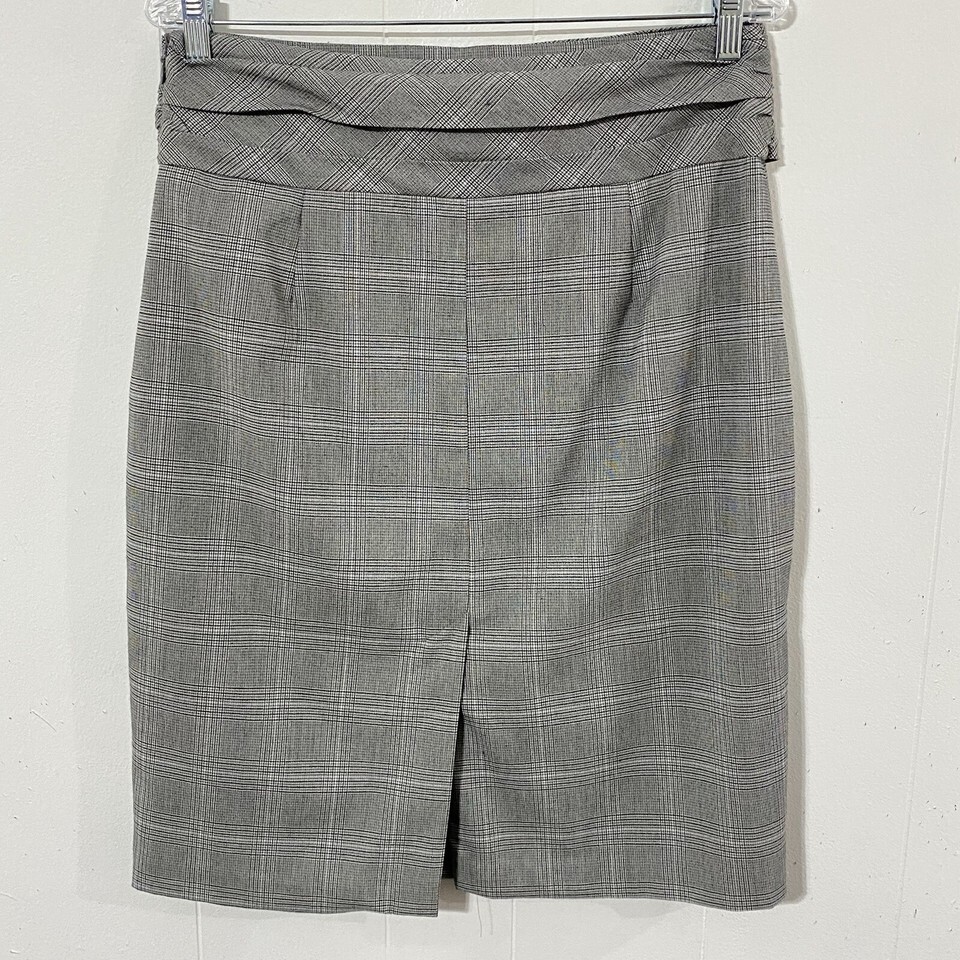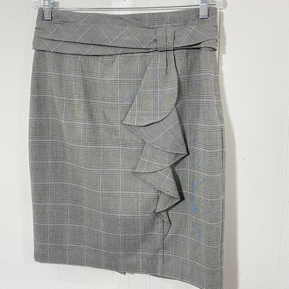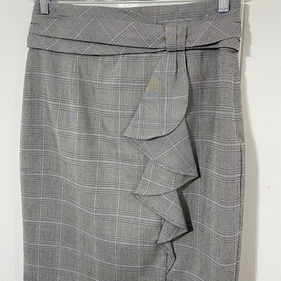 NEW Worthington Glen Plaid 12 Pencil Skirt White Black Gray Ruffle Knee Length