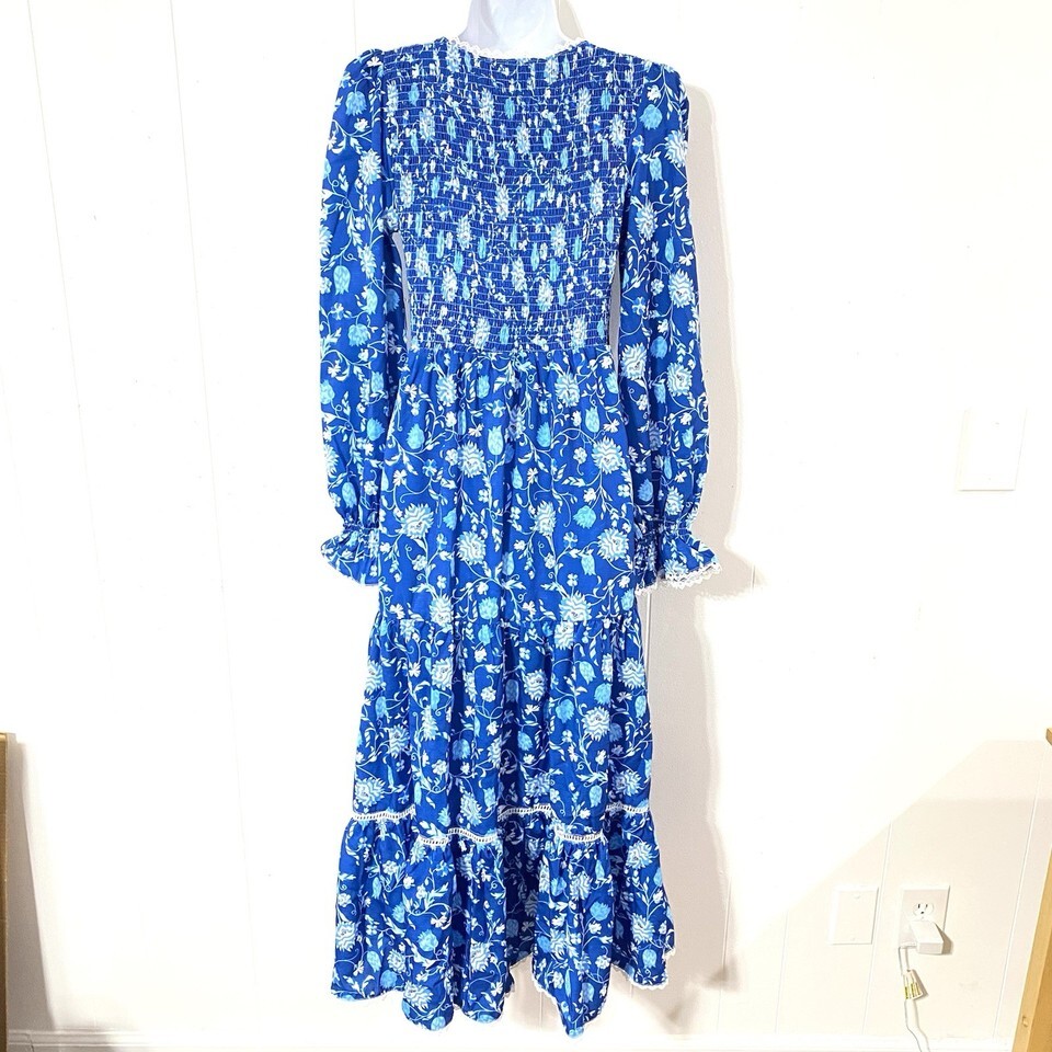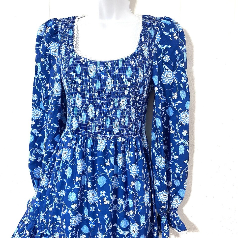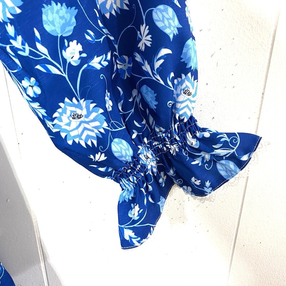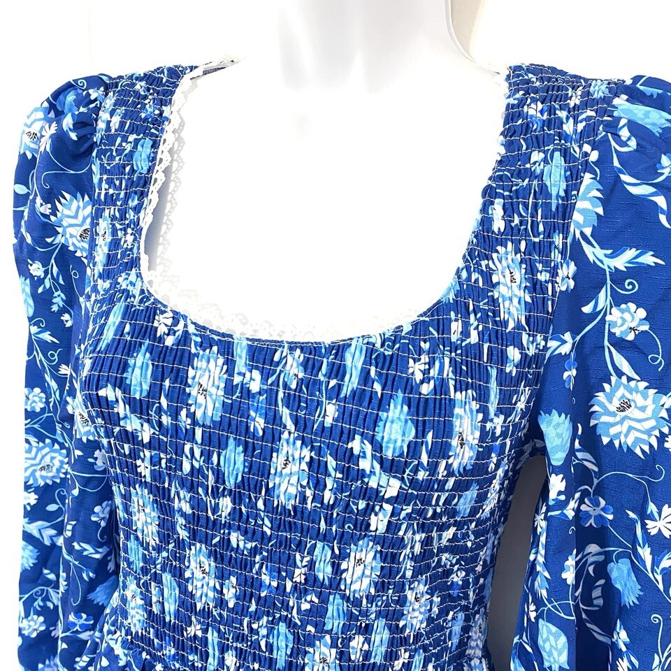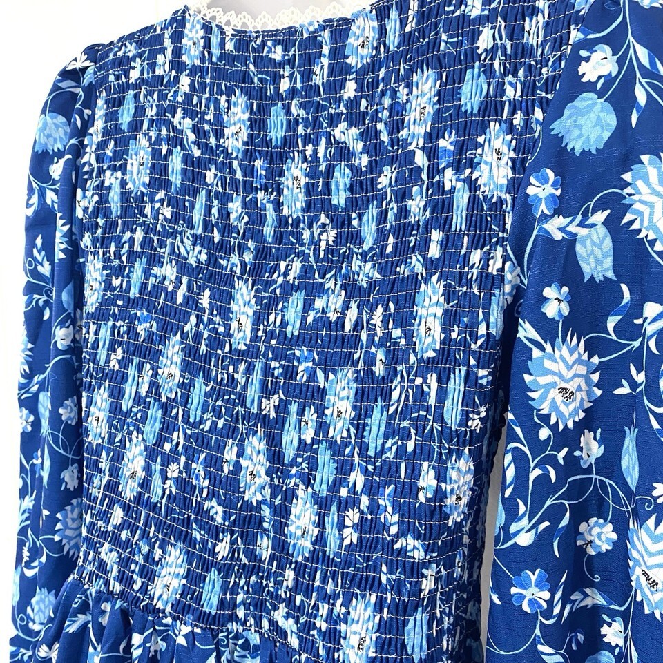 NEW Frida Kahlo x Shein BLUE WHITE Floral POLY Maxi S Cottagecore SHIRRED Ruffle
