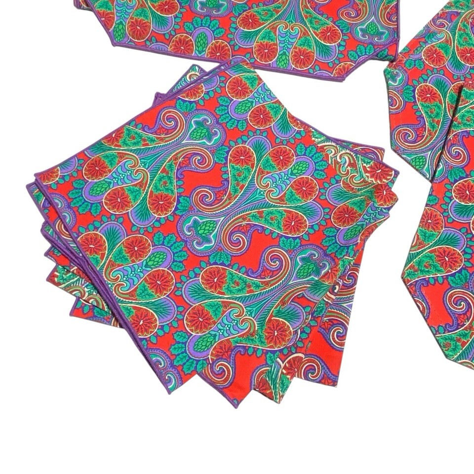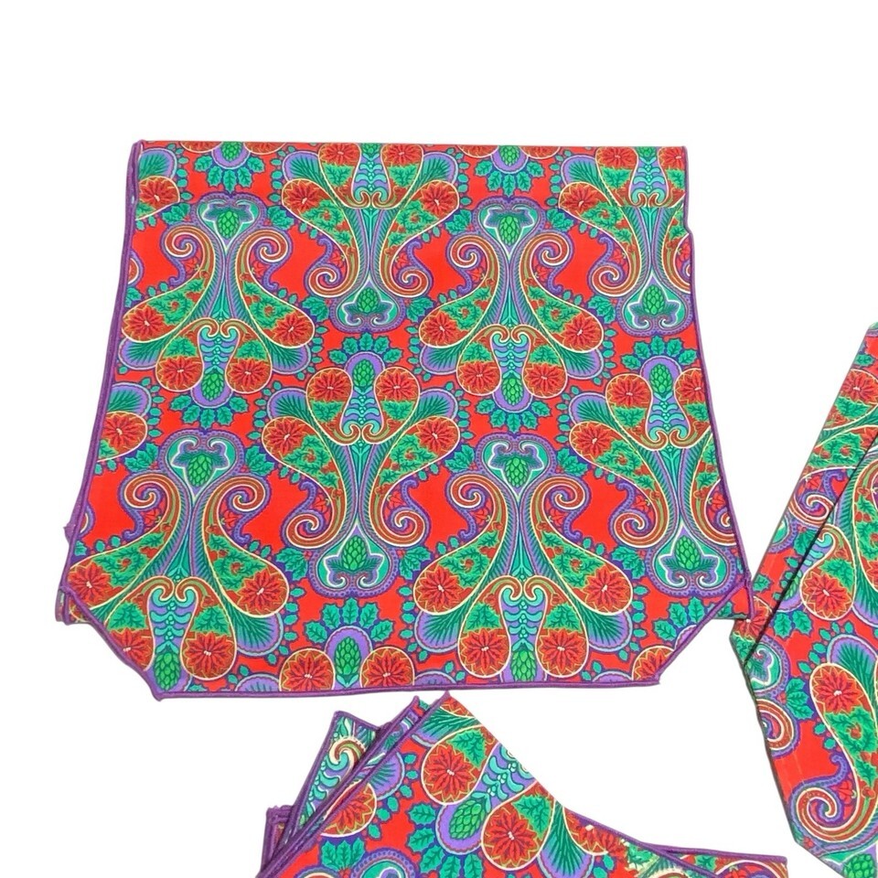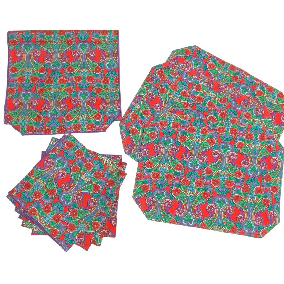 New Vtg John Matouk 8 pc Set Placemats Napkins TABLE RUNNER Paisley Christmas