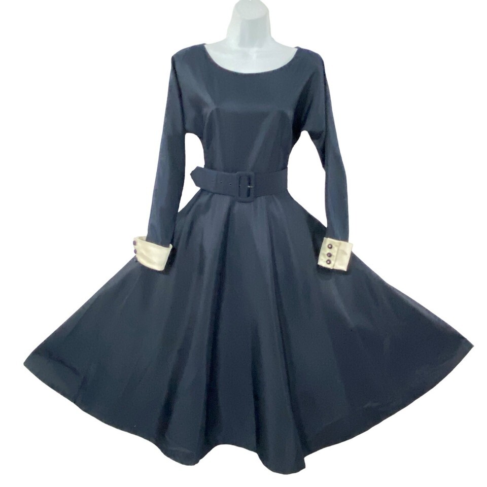 Vtg Andrea Jovine 90's 50's BLUE Poly Taffeta 6 Cocktail SWING SKIRT Midi Dress