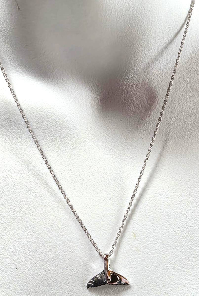 925 Sterling Silver Whale Tail Pendant Necklace W/Makers Mark 18" Chain