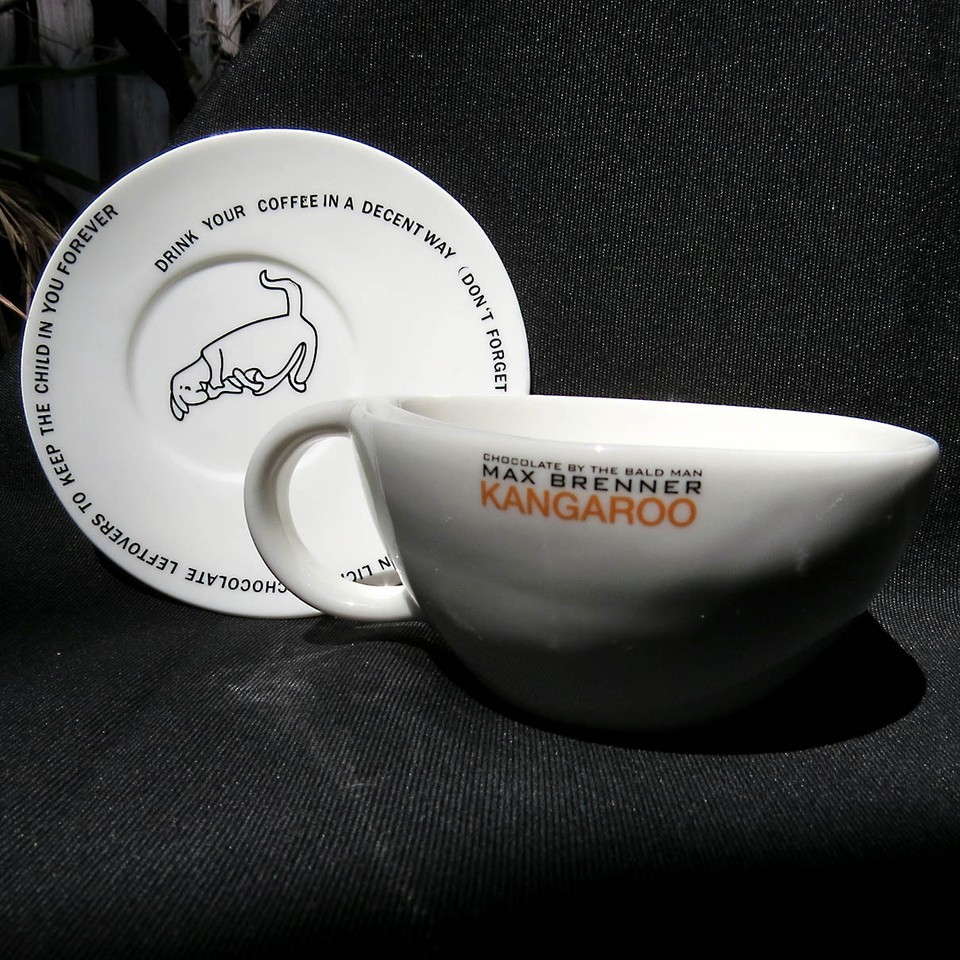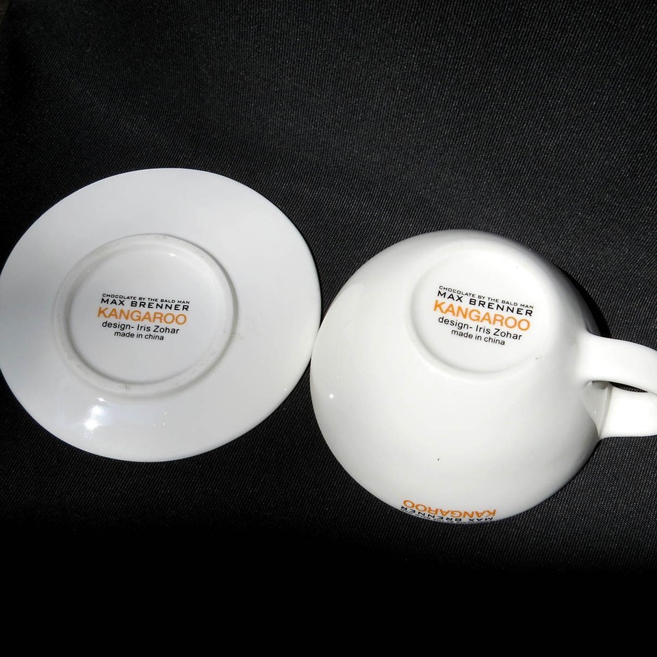 Max Brenner Kangaroo Cup & Saucer Set Coffee Hot Cocoa Rare Iris Zohar