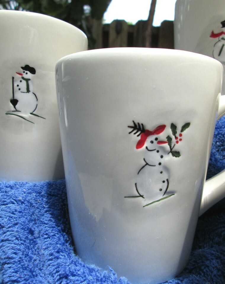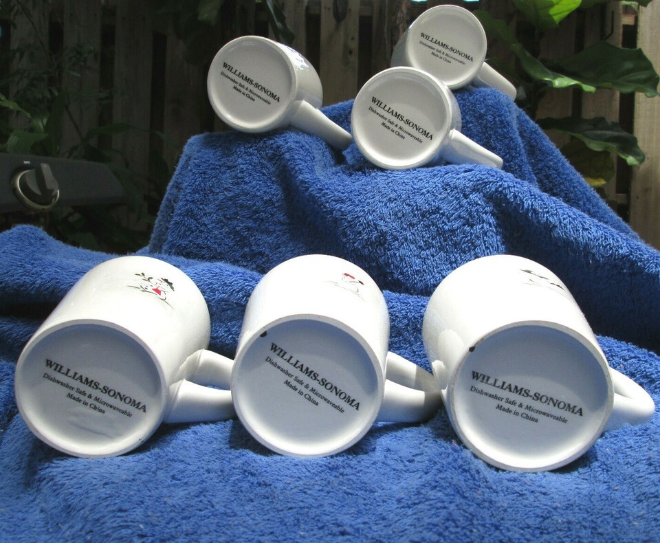 Set of 6 Williams-Sonoma Holiday Mugs Christmas Cups Snowmen Retired CottageCore