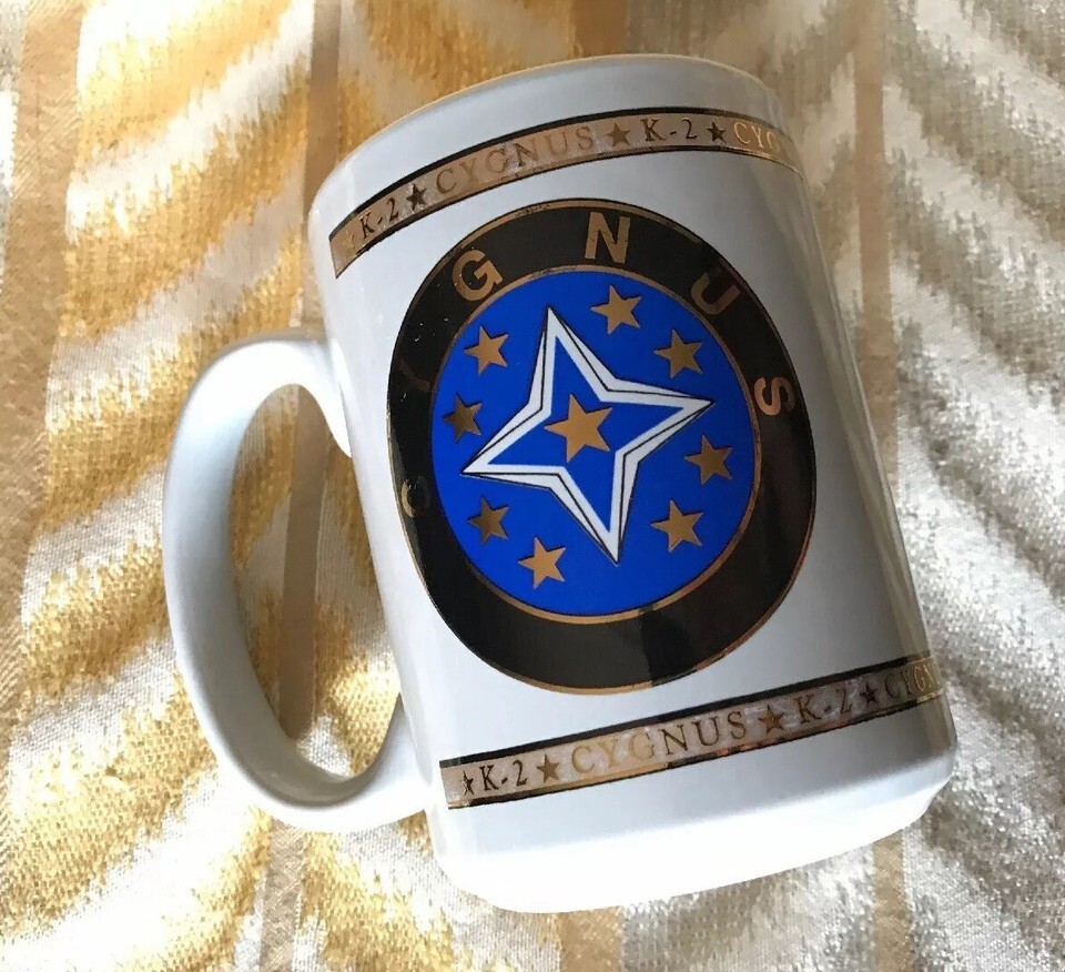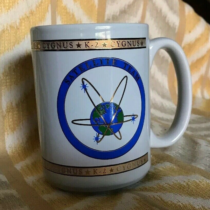 Vtg Tall Cygnus K-2 Satellite Space Team Coffee Mug Cup Spacecraft Astronaut UFO