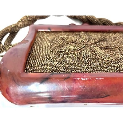 VTG 1940s Beaded Bakelite Box Purse Bronze Carnival Braun Rare