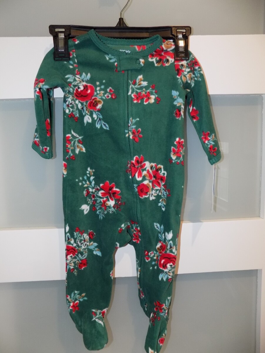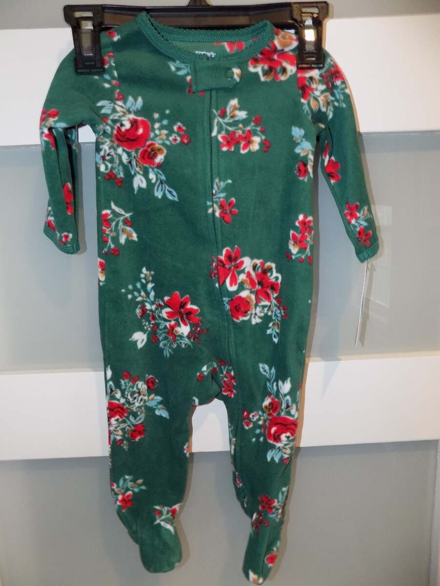 Carter's Green Floral Print LS 2 Way Zipper Footie Size 3 Months Girl's New