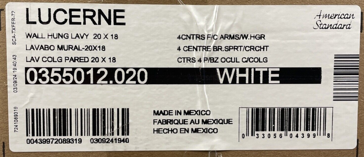 NEW American Standard 0355.012 Lucerne 20-1/2" Wall Mounted