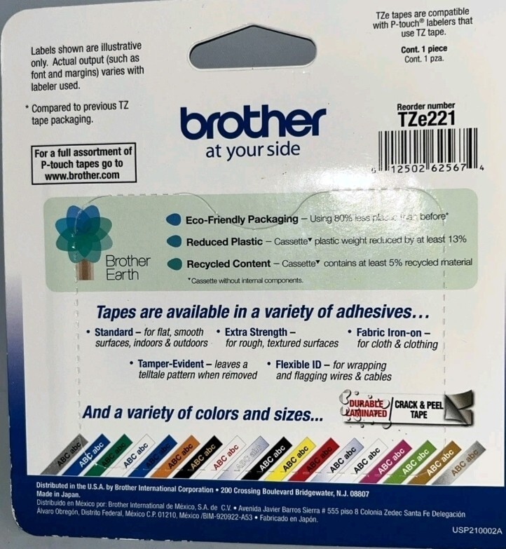 The Genuine Brother TZe-221 P-Touch Label Tape is a high-quality office equipment perfect for label making in a business or industrial setting. This label tape features a 3/8" (9mm) width with black text on a white background, providing clear and professional-looking labels. Made by Brother in the United States, this specific model (TZe-221) is part of the Brother TZE series known for its reliability and durability. Ideal for various labeling needs, this label tape ensures consistent and precise results with every use.