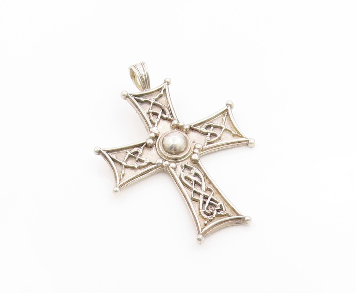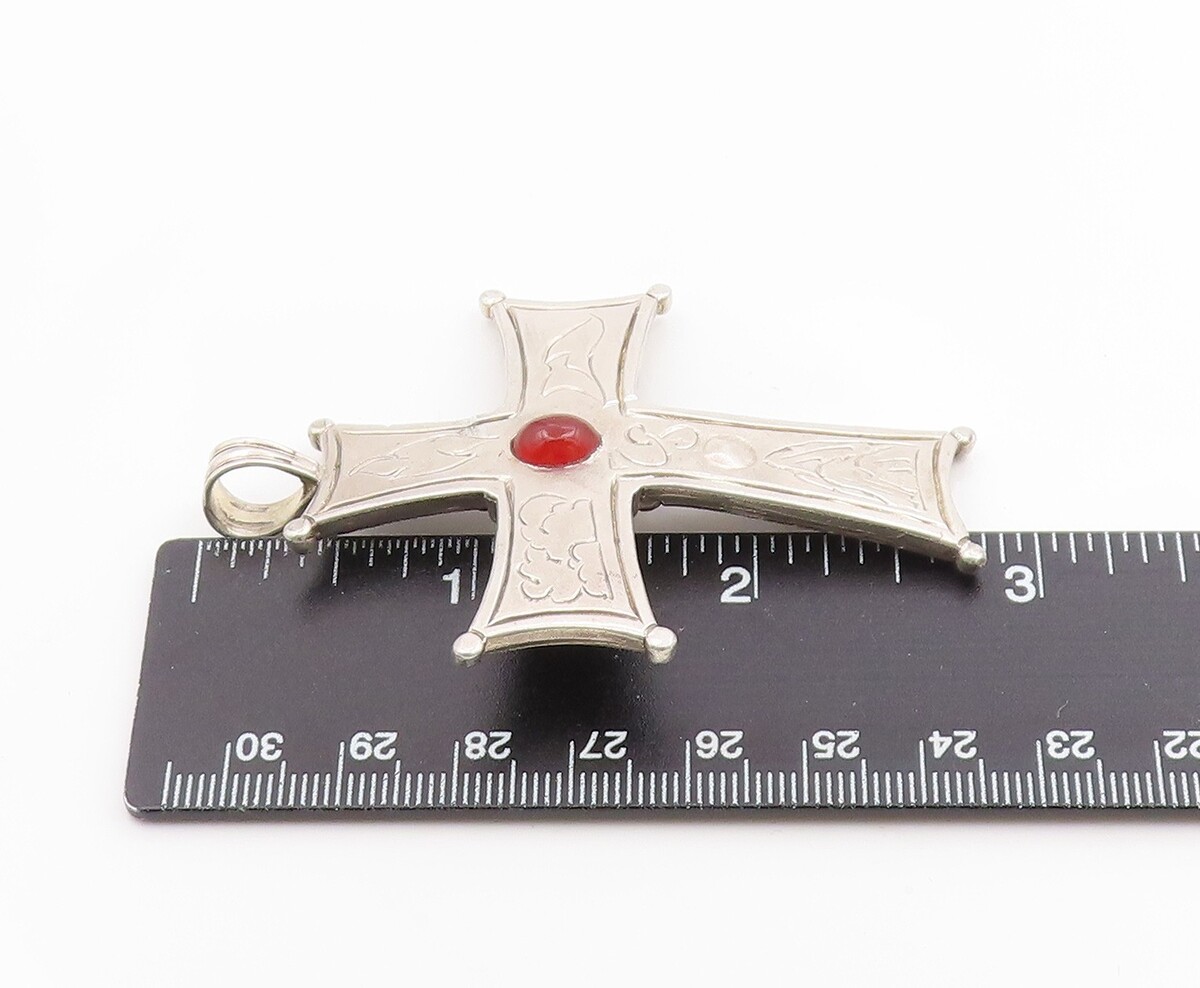 925 Sterling Silver Vintage Pendant Carnelian Modernist Religious Cross PT26259