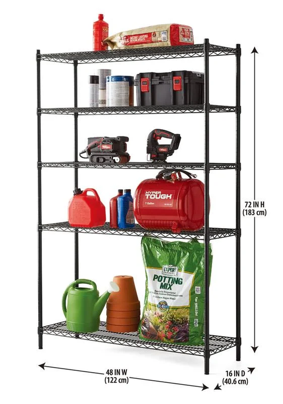 Black Wire Shelf 5-Tier Heavy Duty 72"H X 48"W X 16"D, 3000Lb Total Capacity
