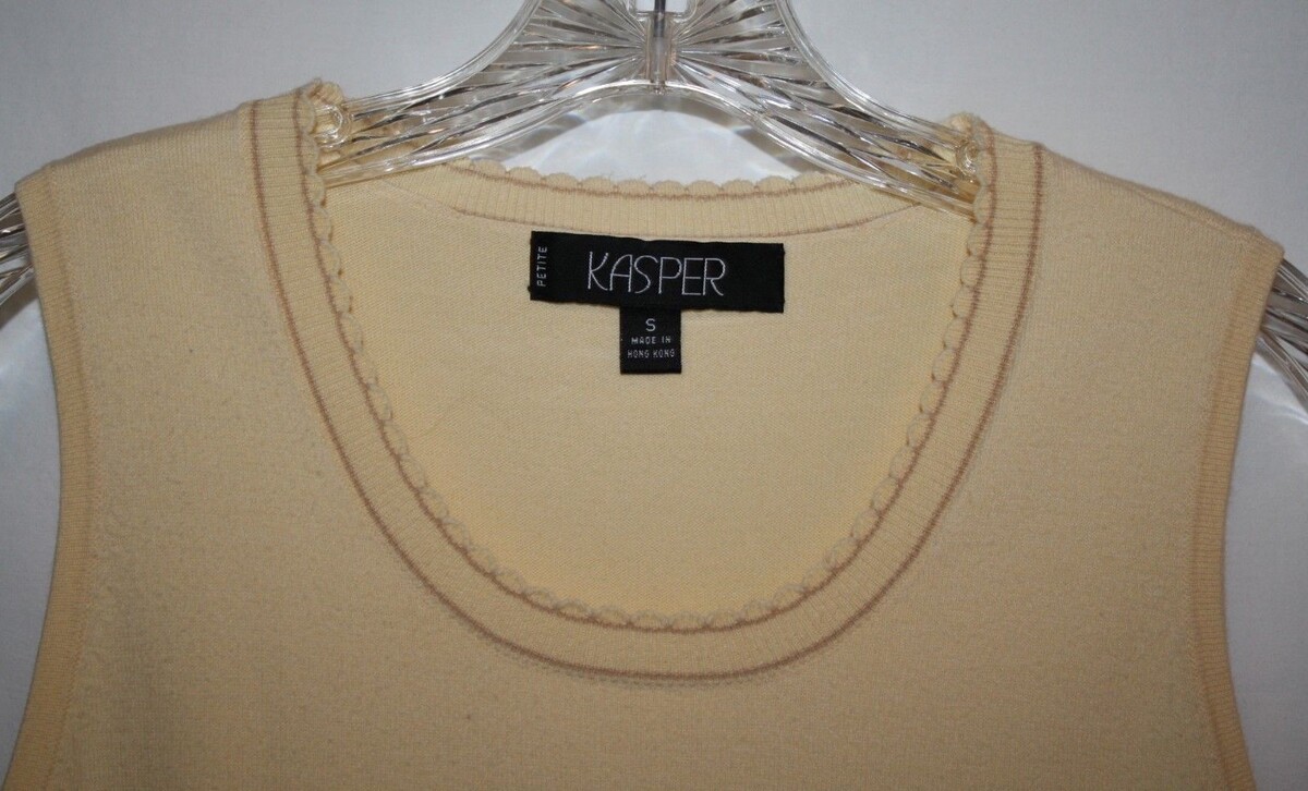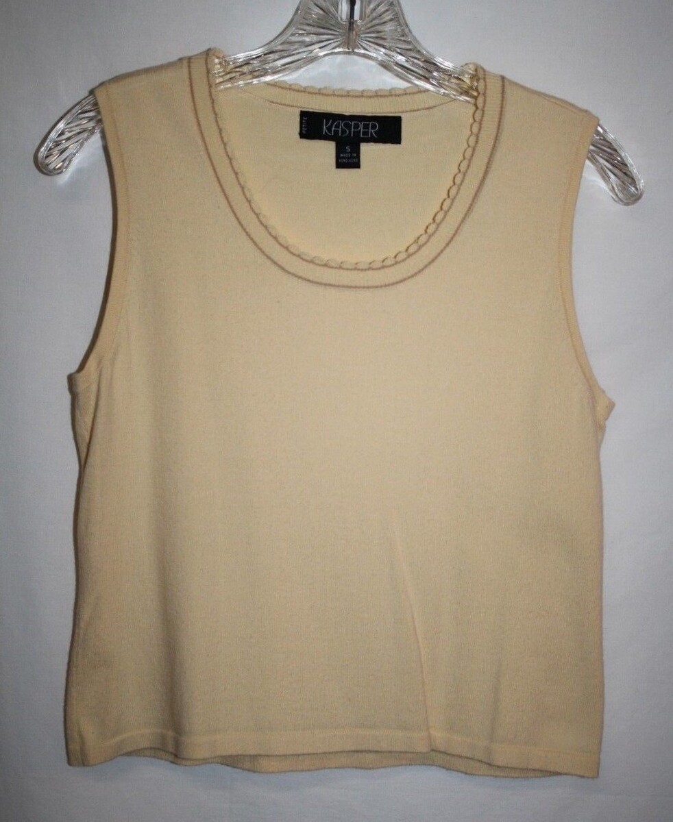 Kasper Petite SMALL Camisole Yellow Tank Top Sweater Round Scalloped Neck Soft