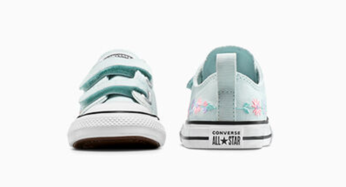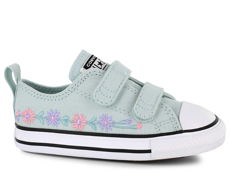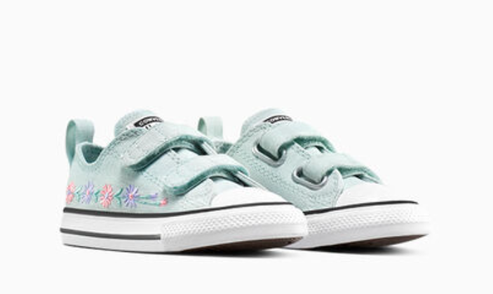 The Converse Chuck Taylor All Star Street Tiny Florals Easy On size # 9 Infant in Dew You is a stylish and comfortable sneaker designed for girls. Double easy closure strap. A11785F. You Dew You.