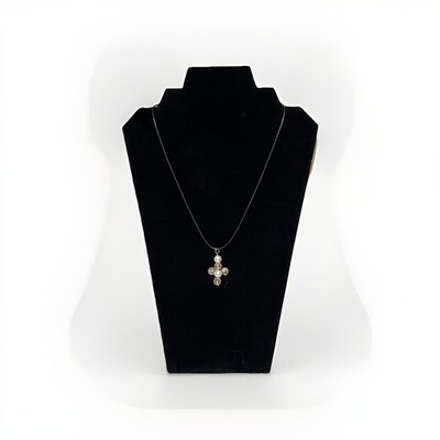 This handmade pendant features a pink and white beaded cross design on a black leather cord. The cross pendant showcases intricate beadwork in vibrant pink hues, making it a stylish accessory for any outfit. The black leather cord adds a touch of elegance and sophistication to the overall design, making it a unique and eye-catching piece of artisan jewelry. Perfect for those who appreciate handmade craftsmanship and a pop of color in their jewelry collection.