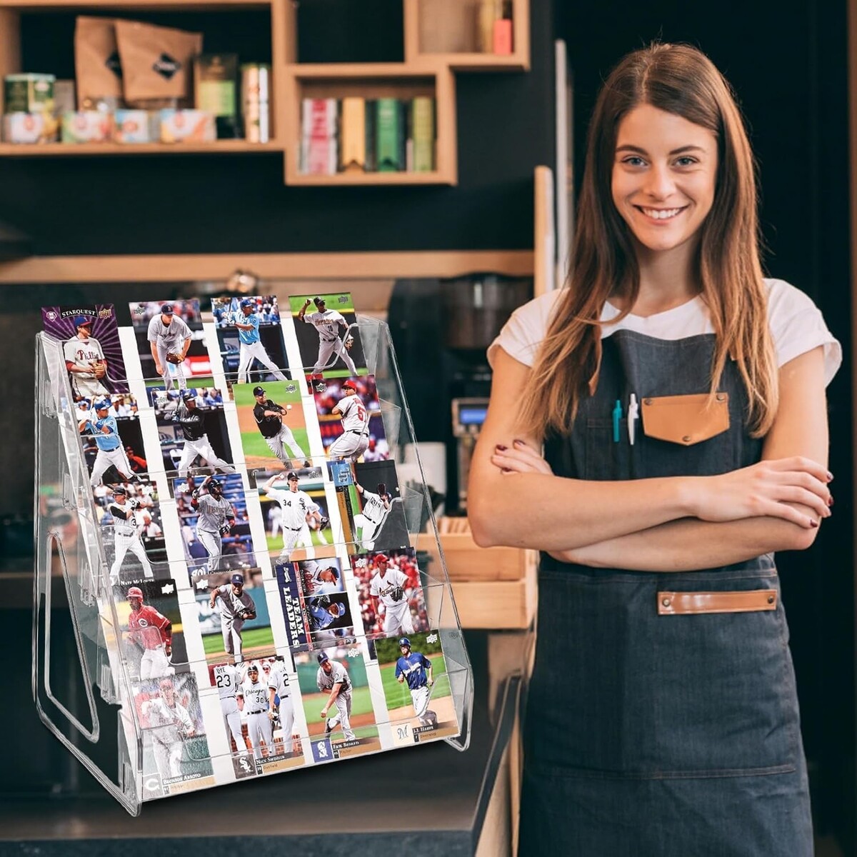 Stable Professional Display:With upgraded height and thickness, this clear 5-tier stand ensures a stable, professional display for all types of cards, showcasing them from every angle?perfect for enhancing visibility and boosting sales.