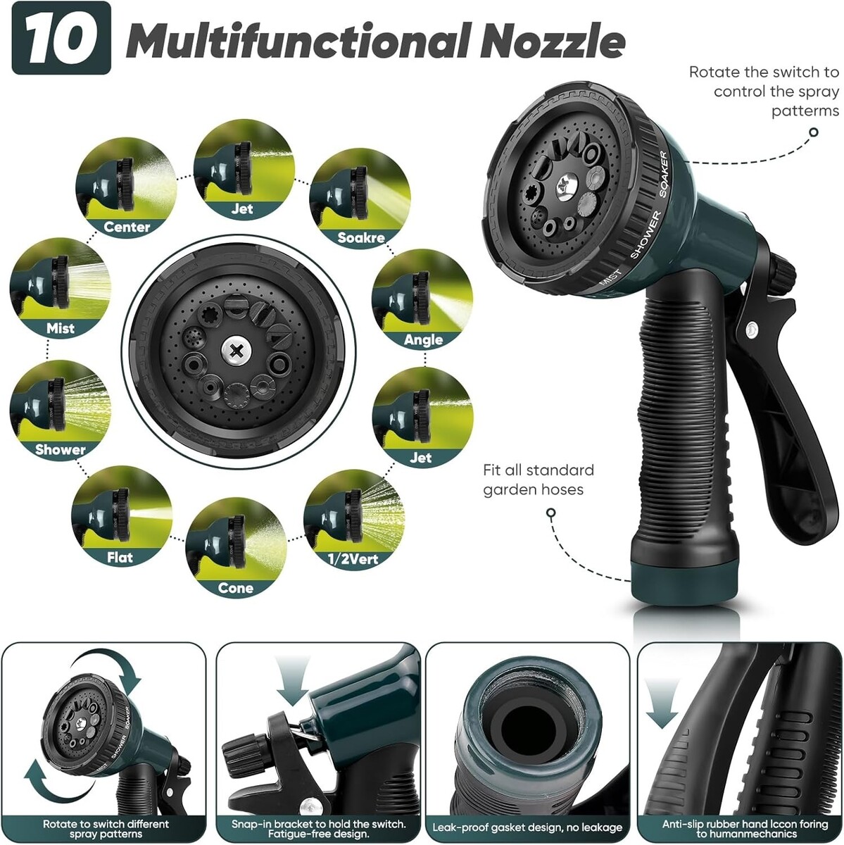 Features: Leak-proof,Wear-Resistant,Kink-Free,Lightweight,Puncture-Proof,Pet-Proof,Weather Resistant,Multi-Functional Nozzle,Ergonomic Design
