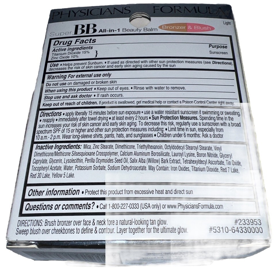 Physicians Formula Super BB Beauty Balm Bronzer & Blush # 6433 LIGHT See Photos