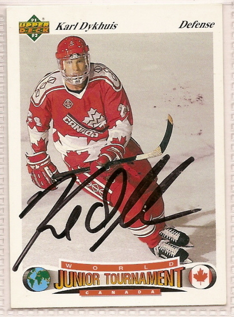For Sale is a Karl Dykhuis Autographed Hockey Card Signed 1991 Upper Deck. all autographs are obtained in person at games, practices, golf tournaments, airports, theaters, arenas, airports. it will be accompanied by a COA from our company. Please ask Any and All Questions prior to purchasing. Fast Same or Next day shipping with Free Delivery Confirmation within the U.S. Payment Due within 7 days of purchase (if you need more time please let us know In advance) we love to combine shipping is always a Yes and Most of the time Additional Items Ship for free.