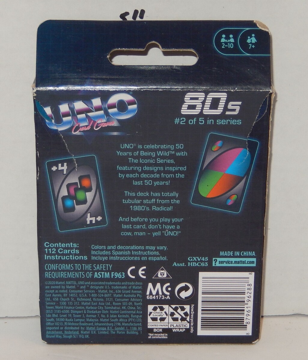 Mattel 2020 UNO 50th Anniversary 80's Card Game #2 in a Series of 5