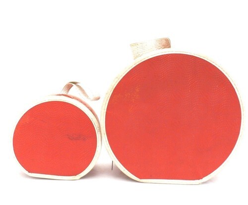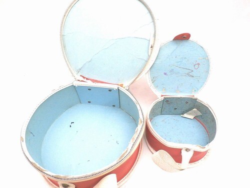VTG 1960s Red Vinyl “Mommy & Me” Hatbox Cases Doll & Child Set Cute Mod Retro
