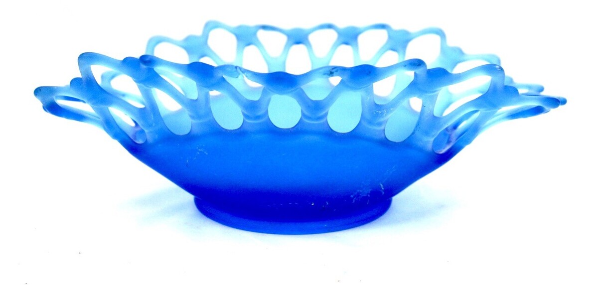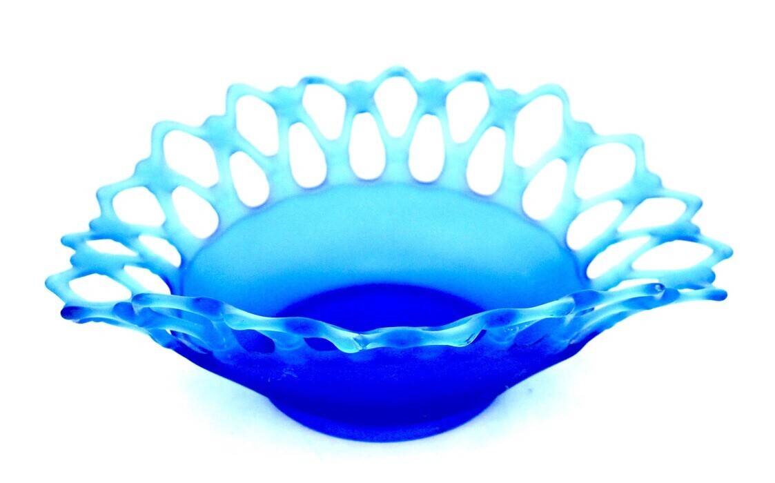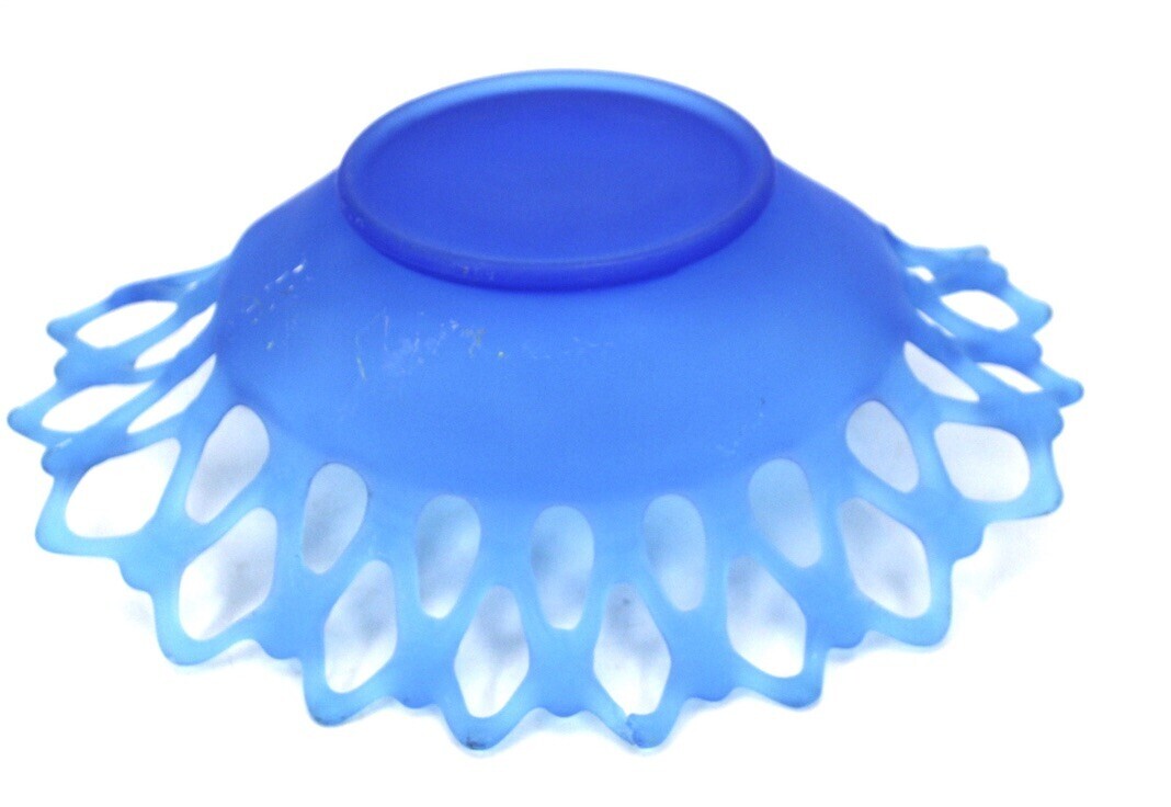 Vintage Westmoreland Blue Satin Open Lace Console Bowl Turquoise Blue Frosted