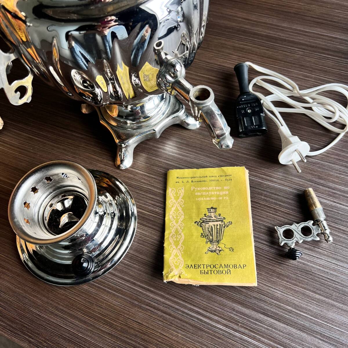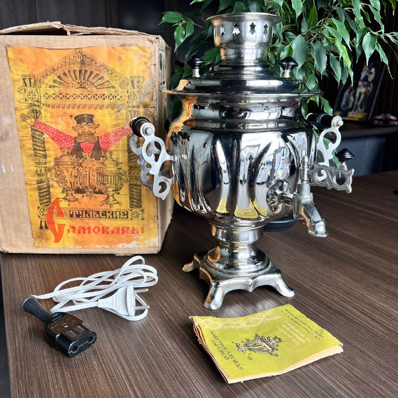 Tula samovars have been a symbol of hospitality for centuries. During the Old era, owning an electric samovar was a sign of both tradition and modern convenience. This model, with the official Tula emblem and production date stamped on the bottom (1988), is a genuine piece of history.