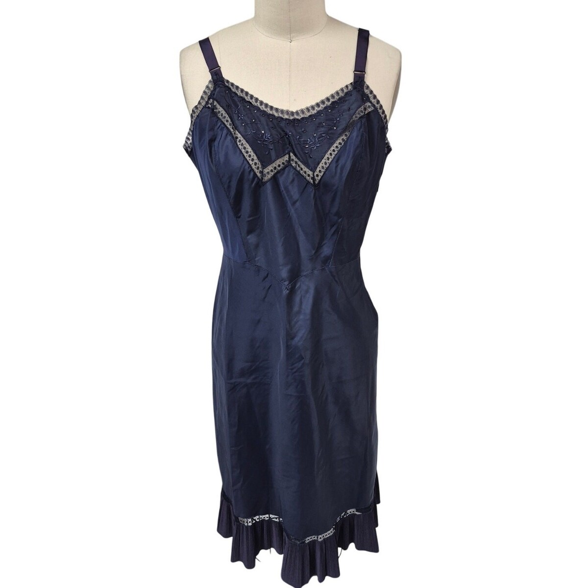 40s 50s VTG Barbizon Noisy Tafredda Navy Blue Full Slip / Slip Dress /Old 16/M