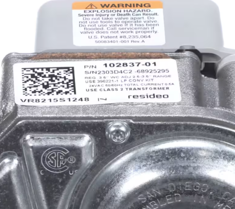 Lennox 102837-01, 2303D4C2-68925295, Gas Valve, 24 Volt, 50/60HZ, Natural Gas