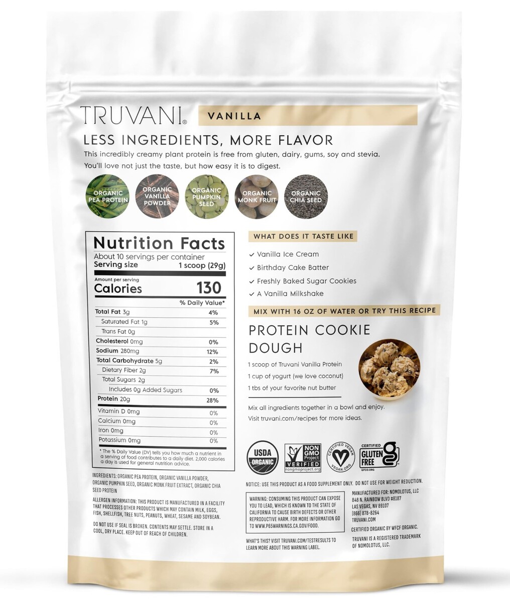 8/26 Truvani Vegan Pea Protein Powder | Vanilla | 20g Organic Plant Based Protei