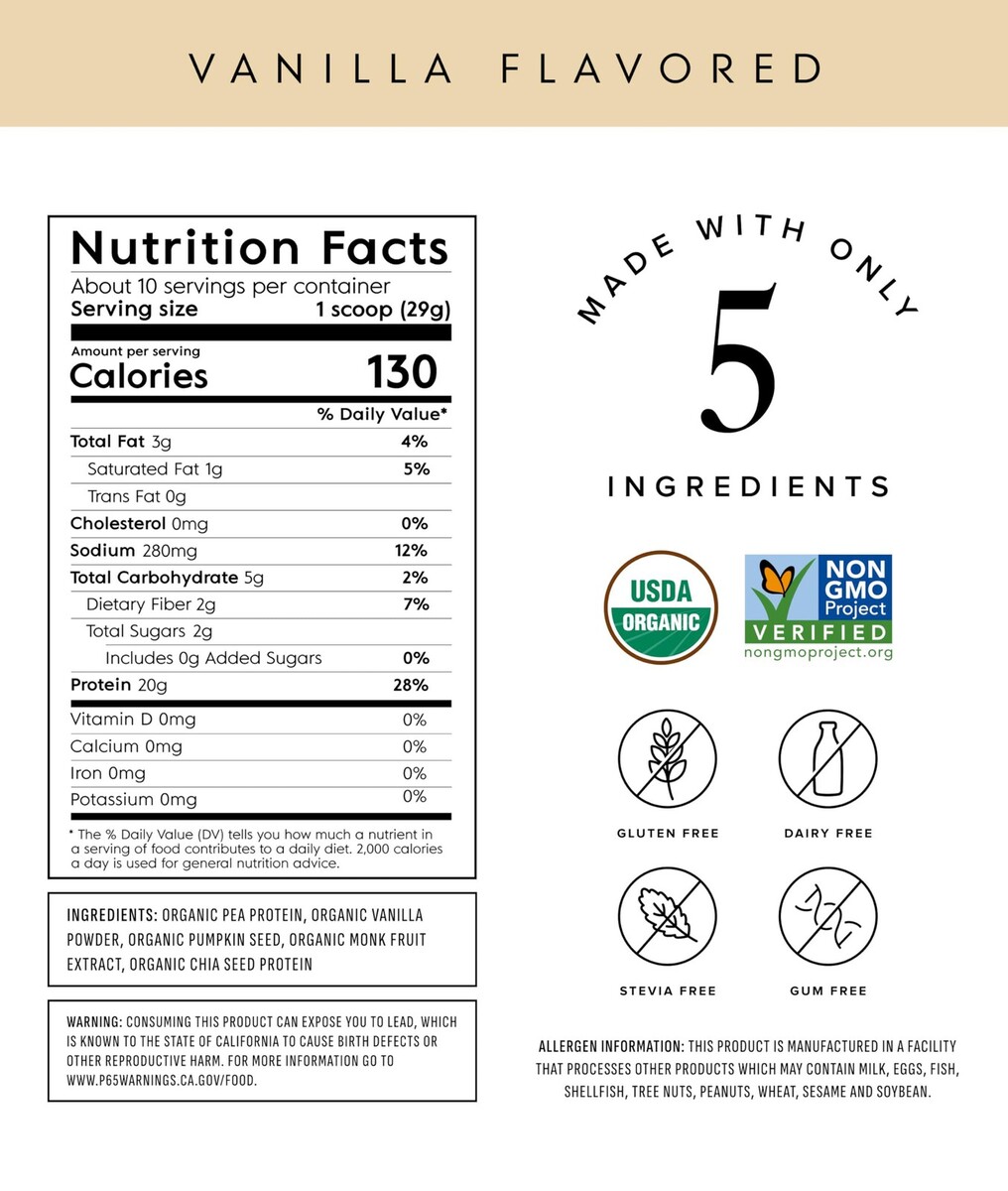 8/26 Truvani Vegan Pea Protein Powder | Vanilla | 20g Organic Plant Based Protein