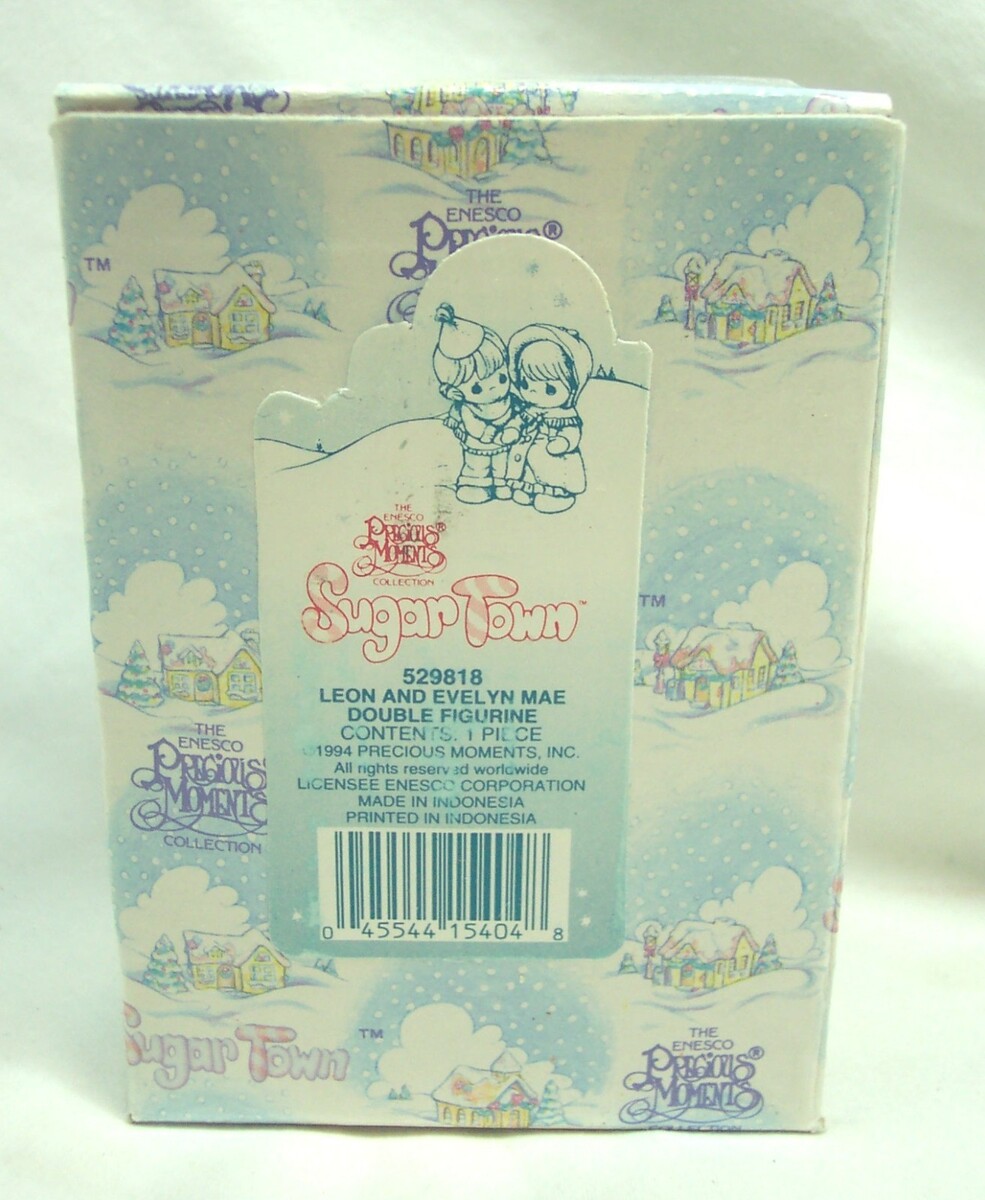 This is a VINTAGE Precious Moments Sugar Town LEON AND EVELYN MAE Double Figurine PORCELAIN FIGURE 529818. Made in 1994. It is 3 1/2 inches tall. It is BRAND NEW IN BOX. Combine auctions to save on shipping. Please contact me if you need to make other payment arrangements. EAG