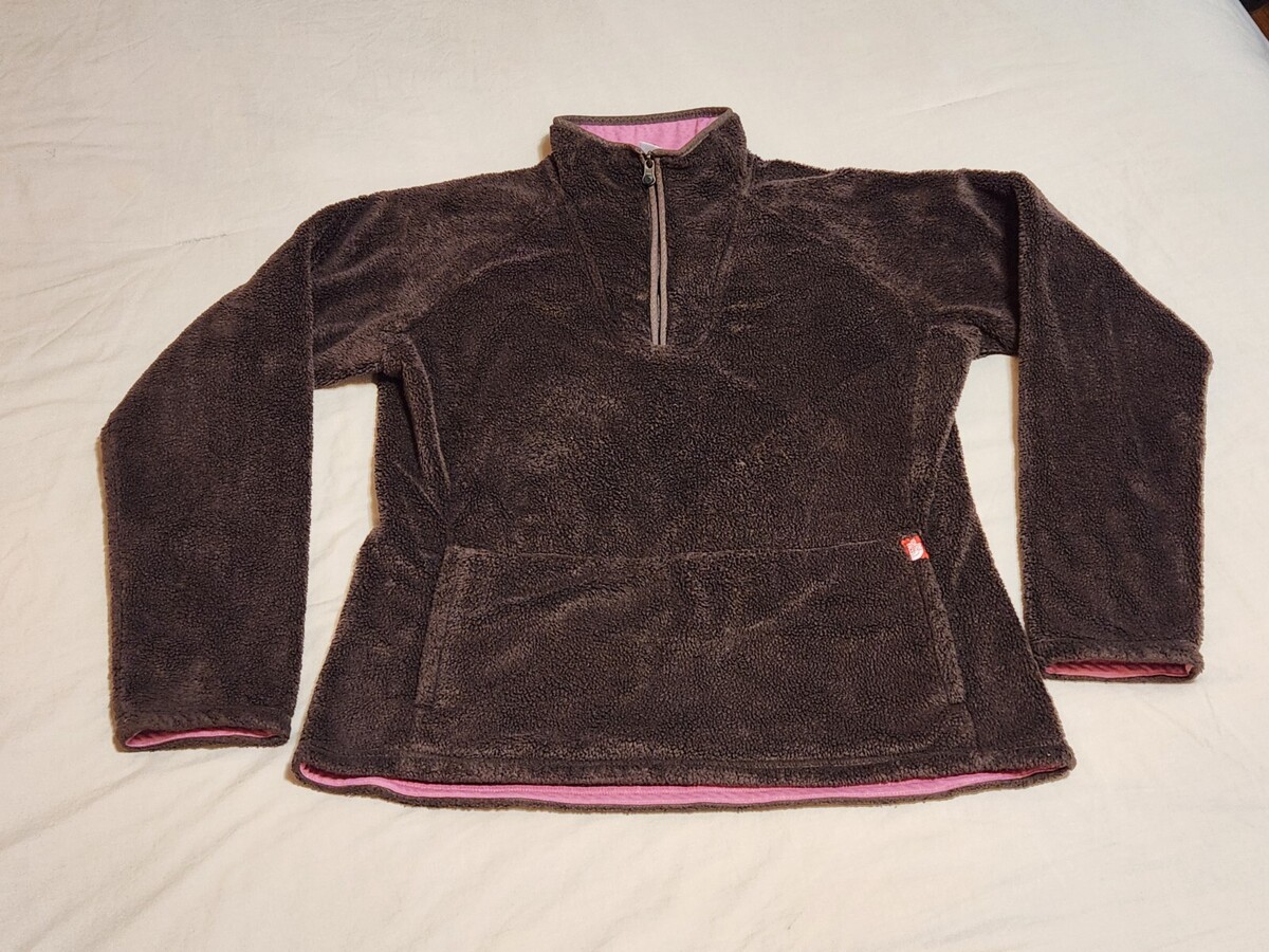 NORTH FACE XL Brown Osito Fleece 1/4 Zip Pullover Hand Warmers Pockets EUC