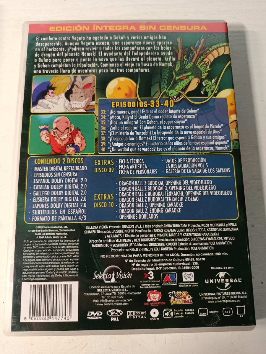This volume collects eight consecutive episodes de the mythical DRAGON BALL Z, focused on the intense fight de los Z Fighters against Nappa and the arrivalde Vegeta to thetierra :momentos classicsque markunantes and un later in the series. The 2DVD Region 2 edition con audio in Spanish and Japanese es ideal para both classic del collectors como para who start their physical collection de DBZ Please, si upon receiving el itemno are you satisfiedcon your status, contact usantesde leave neutral or negative feedback. We will resolve any problem quickly and con personalized attention. We are in Spain and we offer carefully selected items: vinyl, VHS, DVDs, cassettes, books and de. We pay special attention to condition, rarity and presentation. We are based in Spain and offer carefully curated