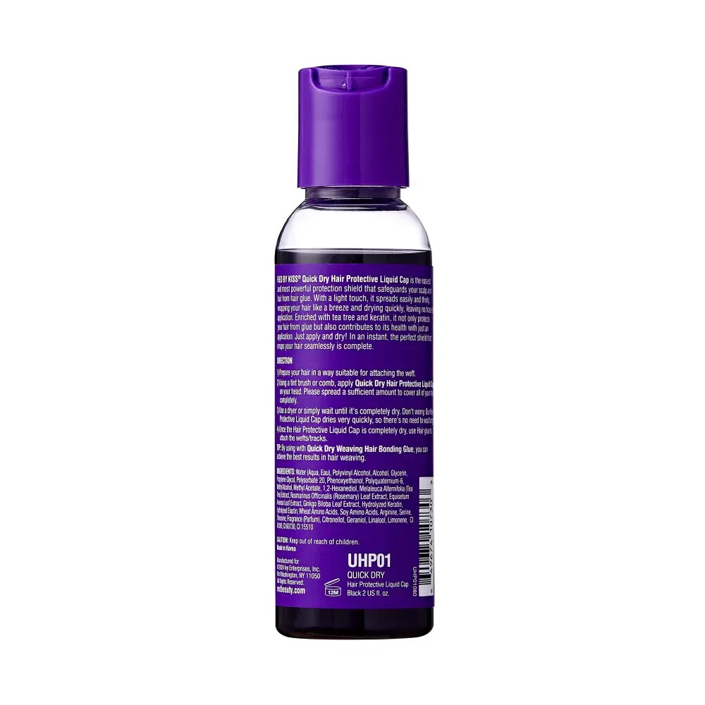 Red by Kiss Quick Dry Hair Protective Liquid Cap is the easiest and most effective shield to protect natural hair and scalp from glue while quick weaving. Spreadable, thin formula enriched with tea tree and keratin works quickly on natural hair or wig caps.?
