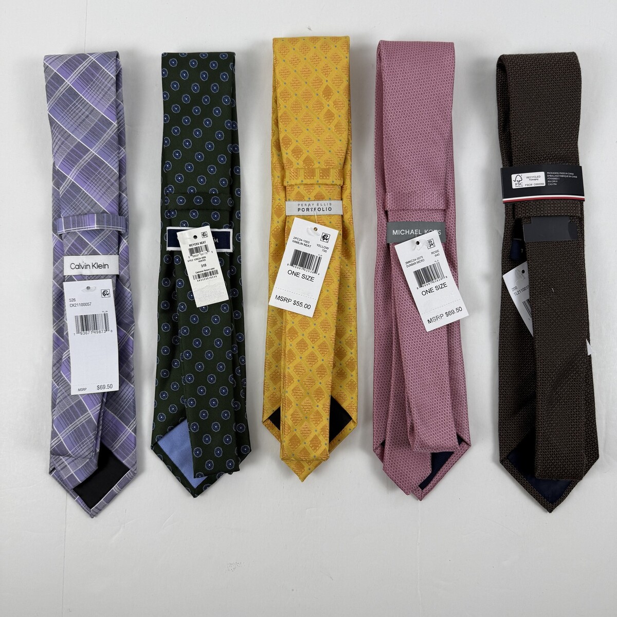 Tommy, Calvin Klein, PE, MK Lot of 5 Premium Silk Polyester Ties Assorted-OS