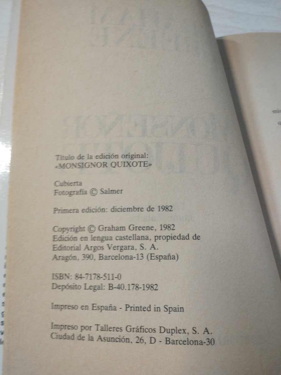 Monseigneur Quichotte Graham Greene Argos 1982 - LIVRE Espagnol Am