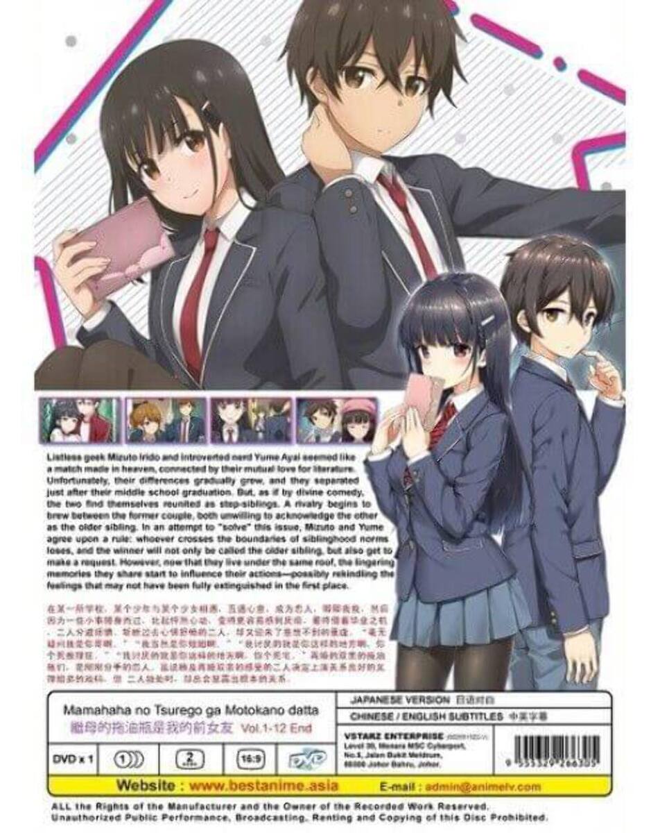 body { font-family: "Market Sans", Arial, sans-serif; } For detail of this set please view below only, and also to tell if this set has english or Japanese audio view below and check out the listing photo back side. If it shows as (Japanese / English Version means it has English audio but if it only shows Japanese Version no English Audio)All our set has at less English Subtitles if only Japanese audio. This set is all regions. MAMAHAHA NO TSUREGO GA MOTOKANO DATTA VOL.1-12 END DVD Title Name MAMAHAHA NO TSUREGO GA MOTOKANO DATTA VOL.1-12 END No of Disc 1 Disc (12 Episodes) Version Japanese Subtitles Chinese / English Format DVD / NTSC All Region Code (16:9) STORY : Listless geek Mizuto Irido and introverted nerd Yume Ayai seemed like a match made in heaven, connected by their mutual love for literature. Unfortunately, their differences gradually grew, and they separated just after their middle school graduation. But, as if by divine comedy, the two find themselves reunited as step-siblings.A rivalry begins to brew between the former couple, both unwilling to acknowledge the other as the older sibling. In an attempt to "solve" this issue, Mizuto and Yume agree upon a rule: whoever crosses the boundaries of siblinghood norms loses, and the winner will not only be called the older sibling, but also get to make a request. However, now that they live under the same roof, the lingering memories they share start to influence their actions?possibly rekindling the feelings that may not have been fully extinguished in the first place. We Only Sell Original/Genuine DVDs. All DVDs I'm selling are from Licensed Publisher in Malaysia. All DVDs come with Original Sealed Authenticated Sticker / Hologram by Malaysia Censorship Board. ALL PACKAGE WILL BE SHIP OUT FROM USA CA SAN DIEGO AREA OCEANSIDE, SAN MARCOS. THIS MEAN WITH IN USA YOU SHOULD RECEIVE THE PACKAGE WITH IN 2-4 BUSINESS DAY AFTER SHIP OUT. We Only Sell Original/Genuine DVDs. All DVDs I'm selling are from Licensed Publisher in Malaysia. All our products are All region so it will play any dvd player in the world Any problem please contact us first so we can speed up taking care of you.