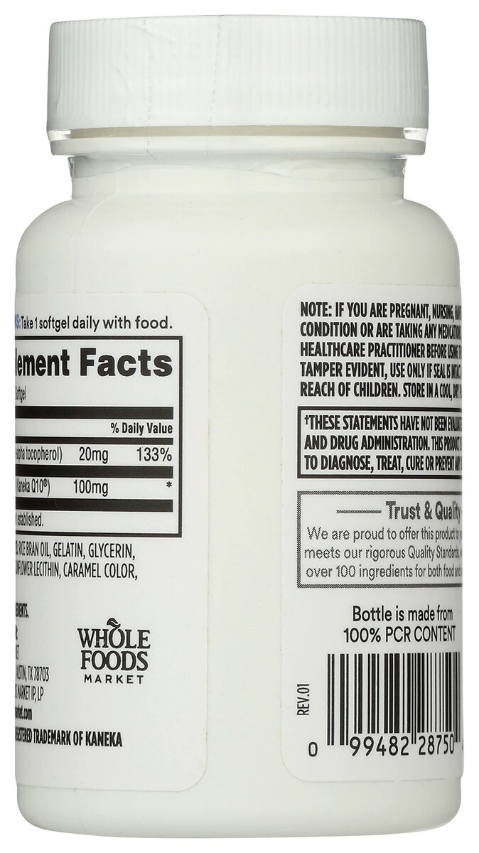 Expiration Date of 01/2026 ? 60 capsules of CoQ10 100mg for heart health support ? Powerful antioxidant supporting cardiovascular function ? Premium quality enzyme supplement ? Free from artificial colors, flavors, and preservatives ? Manufactured following GMP guidelines ? Whole Foods Market quality guaranteed