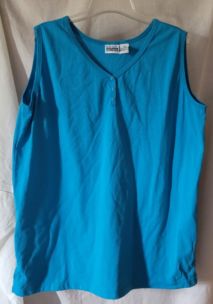 Women's Basic Editions Shirt Size 24W Sleeveless Blue Pullover Summer Casual