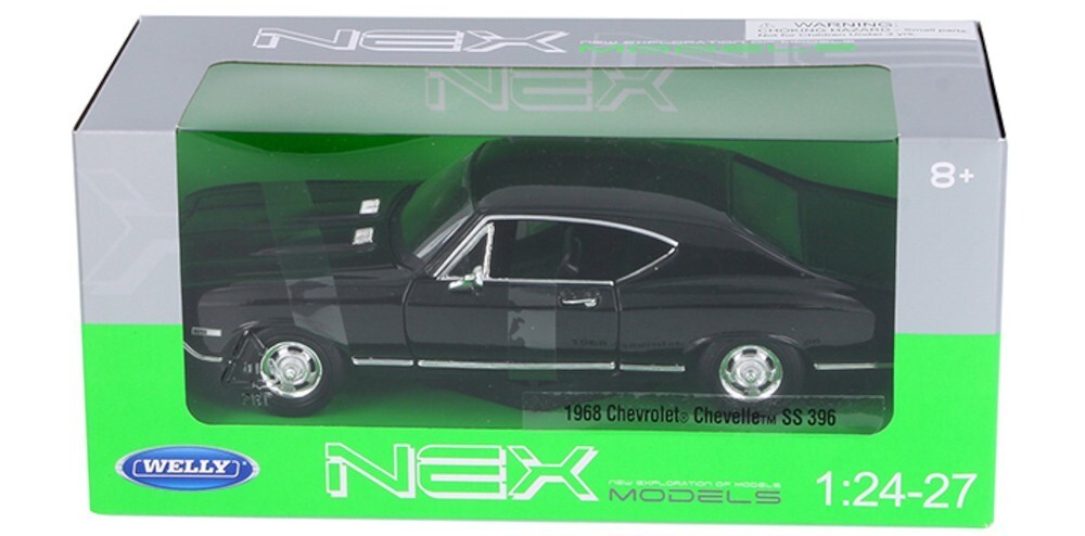 1968 Chevrolet Chevelle SS-396 1/24 Scale Diecast Model by Welly - BLACK w/ BOX