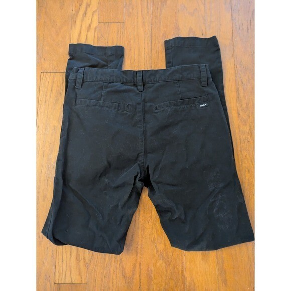 Parole chiave: pantaloni RVCA, pantaloni chino, abbigliamento da uomo, pantaloni casual, pantaloni neri, davanti piatto, elemento base del guardaroba, casual elegante, abbigliamento quotidiano, vestibilita su misura