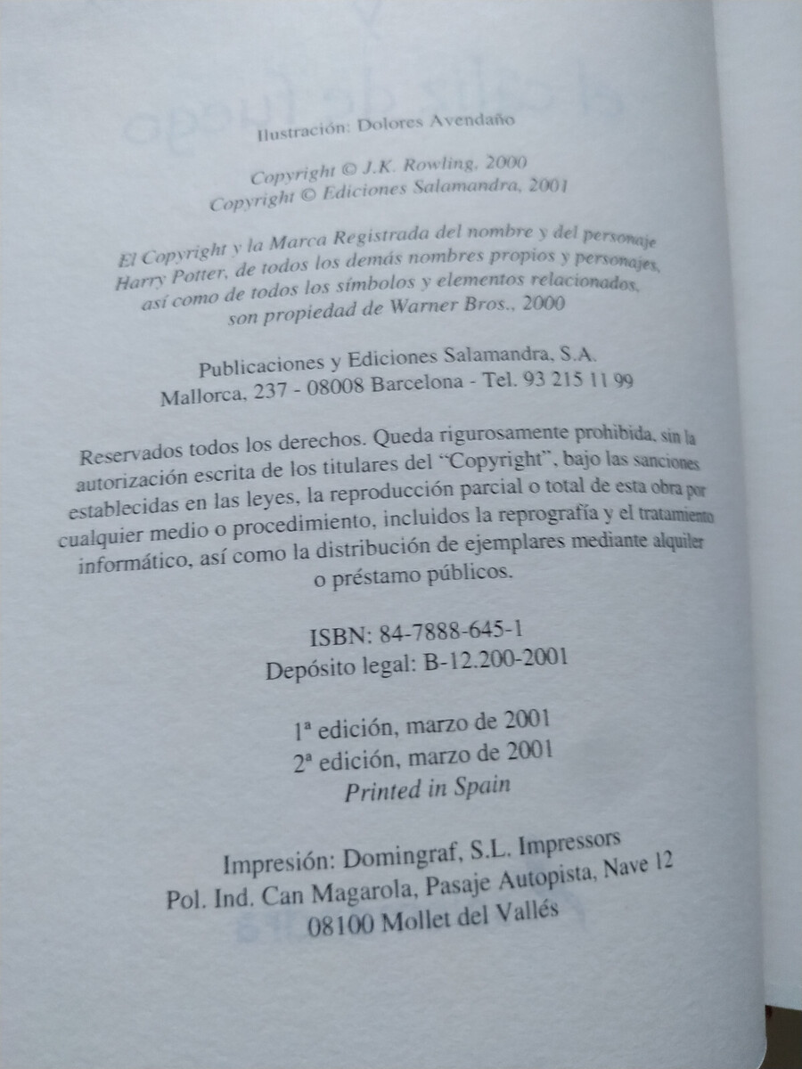 Harry Potter E El calice de fuoco JK Rowling 2001 Salamander - LIBRO Spanish Am