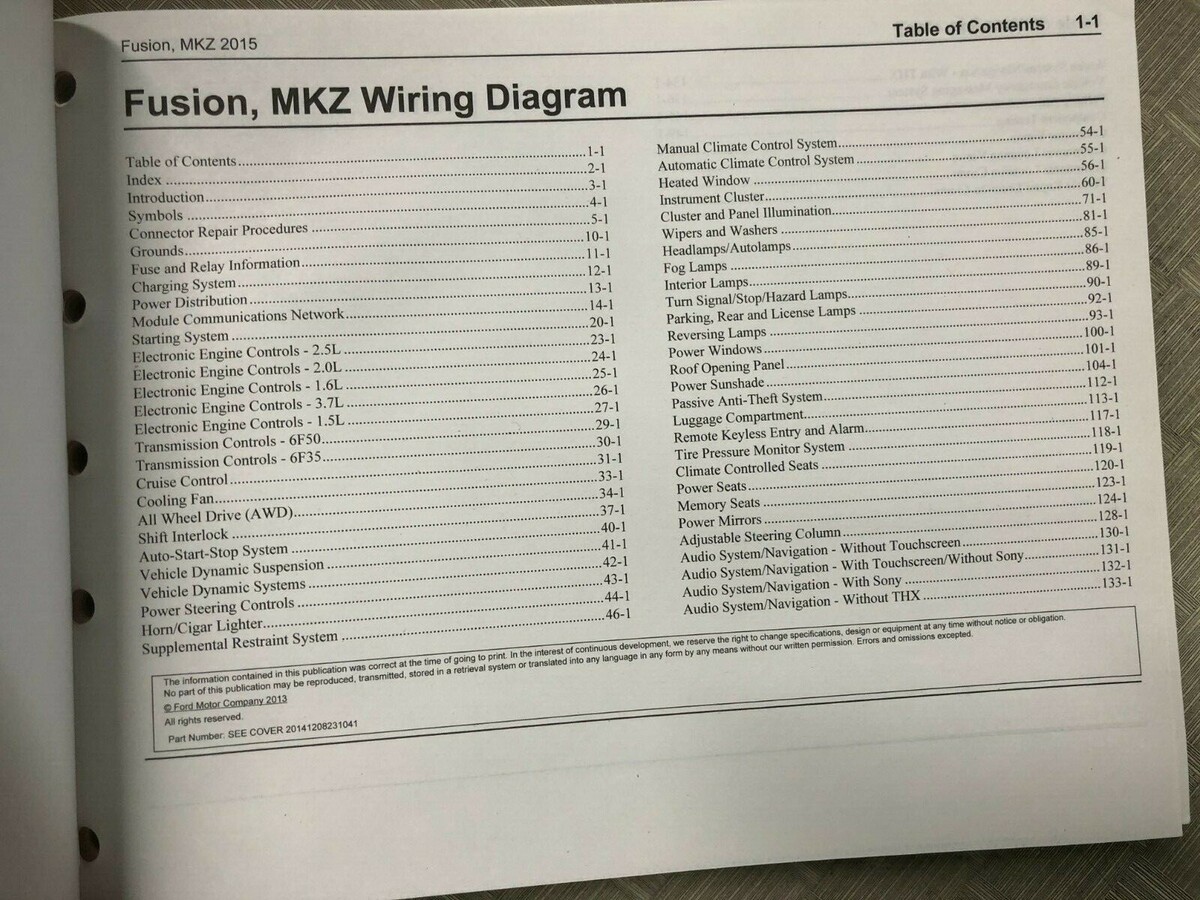 2015 Ford FUSION Lincoln MKZ Electrical Wiring Diagrams Manual