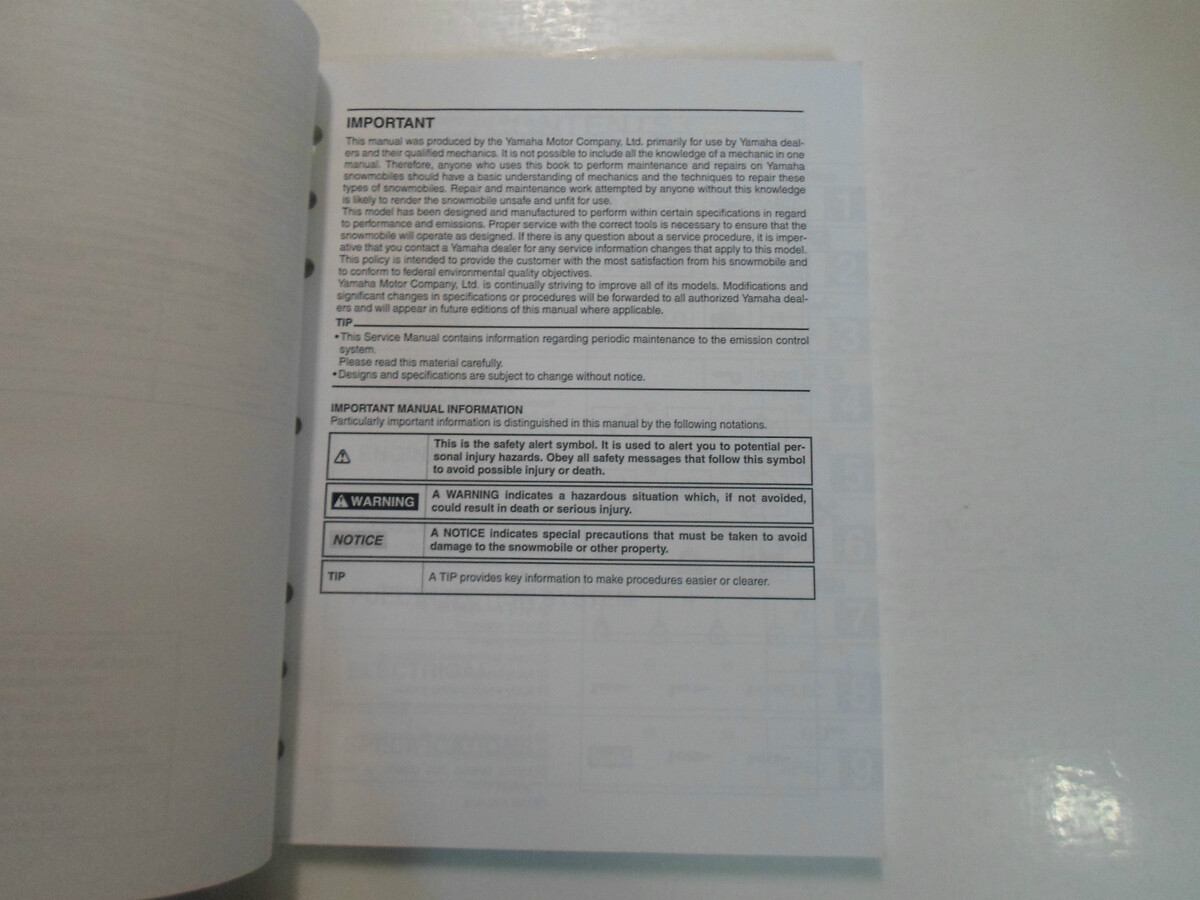 2007 Yamaha VK10W Supplementary Service Repair Manual FACTORY SNOWMOBILE USED