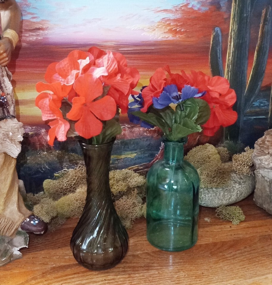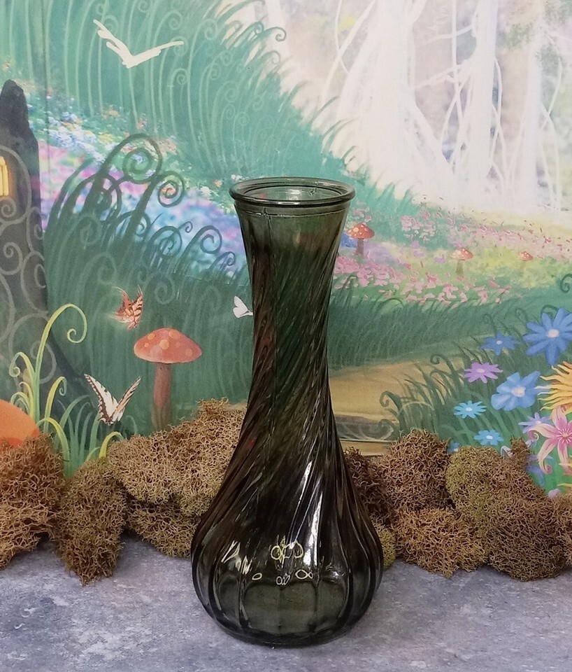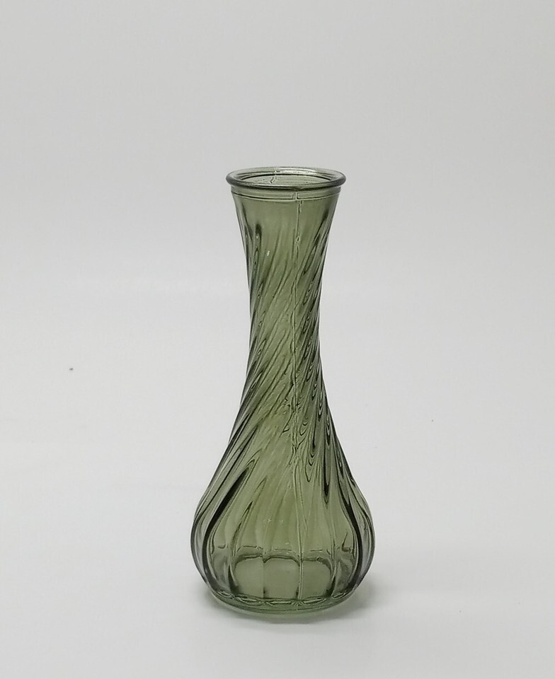 Green Smoke Colored Glass Genie Bottle / Bud Vase Height = 6 in