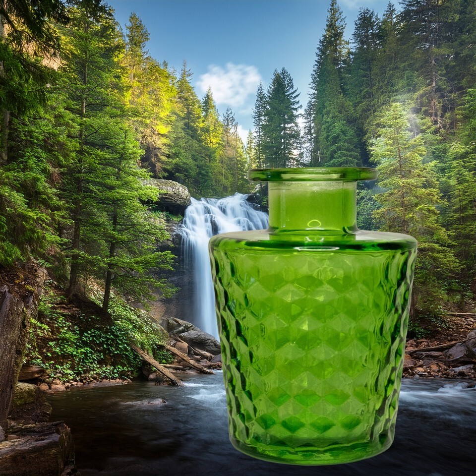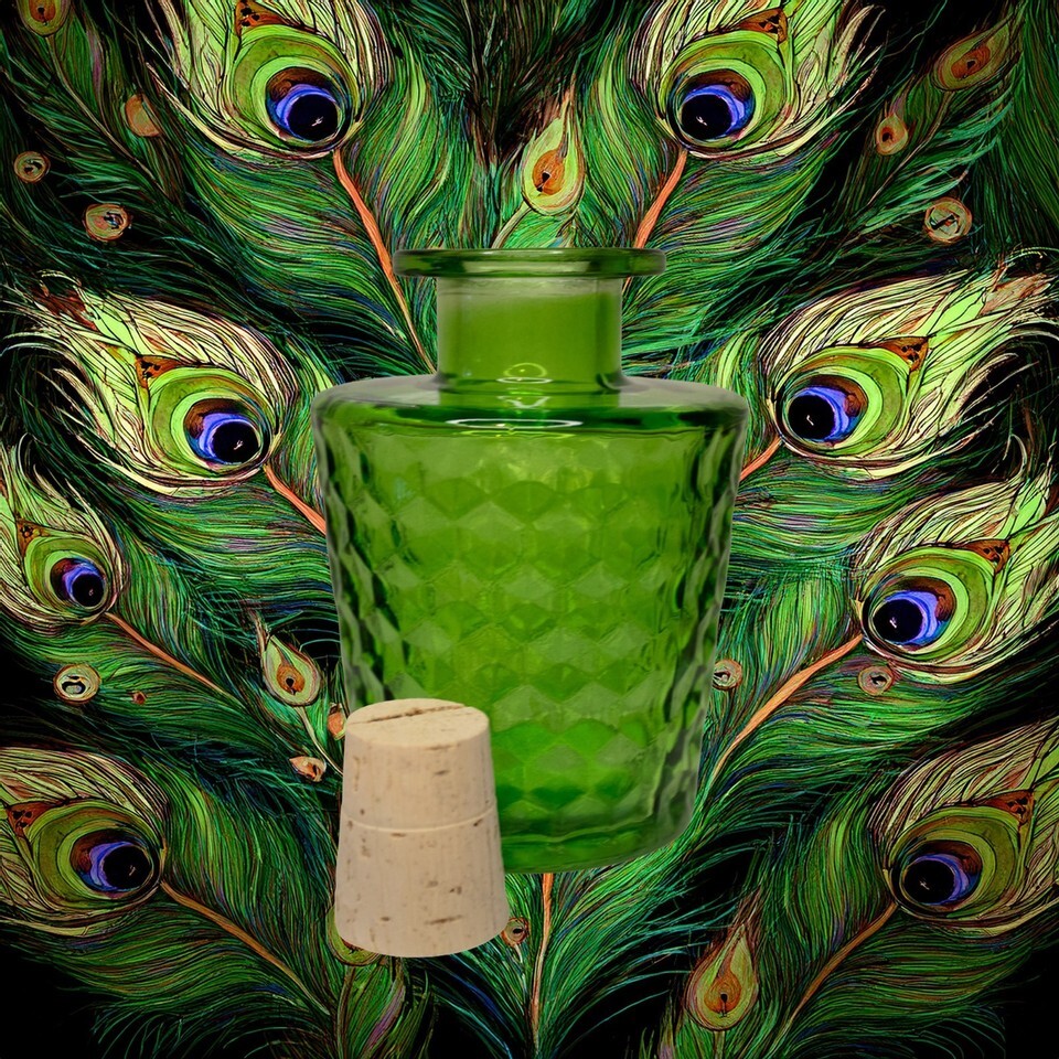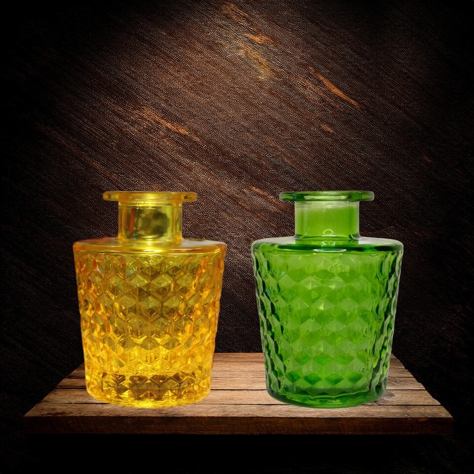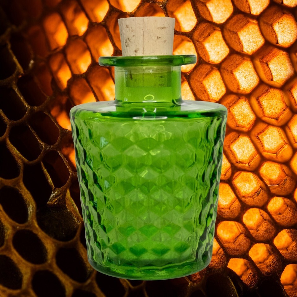 Green Colored Diamond-Cut European Vintage Style Glass Round Decorative Bottle