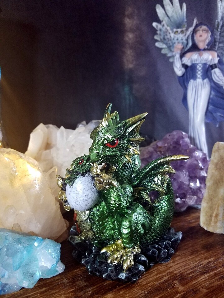Green Dragon Mom and Baby Dragon Hatching From an Egg Collectible Figurine 71797