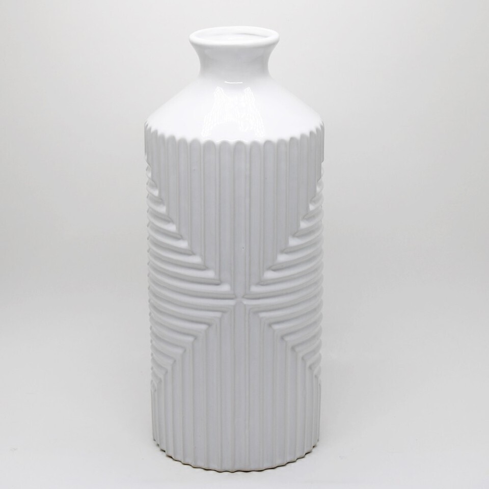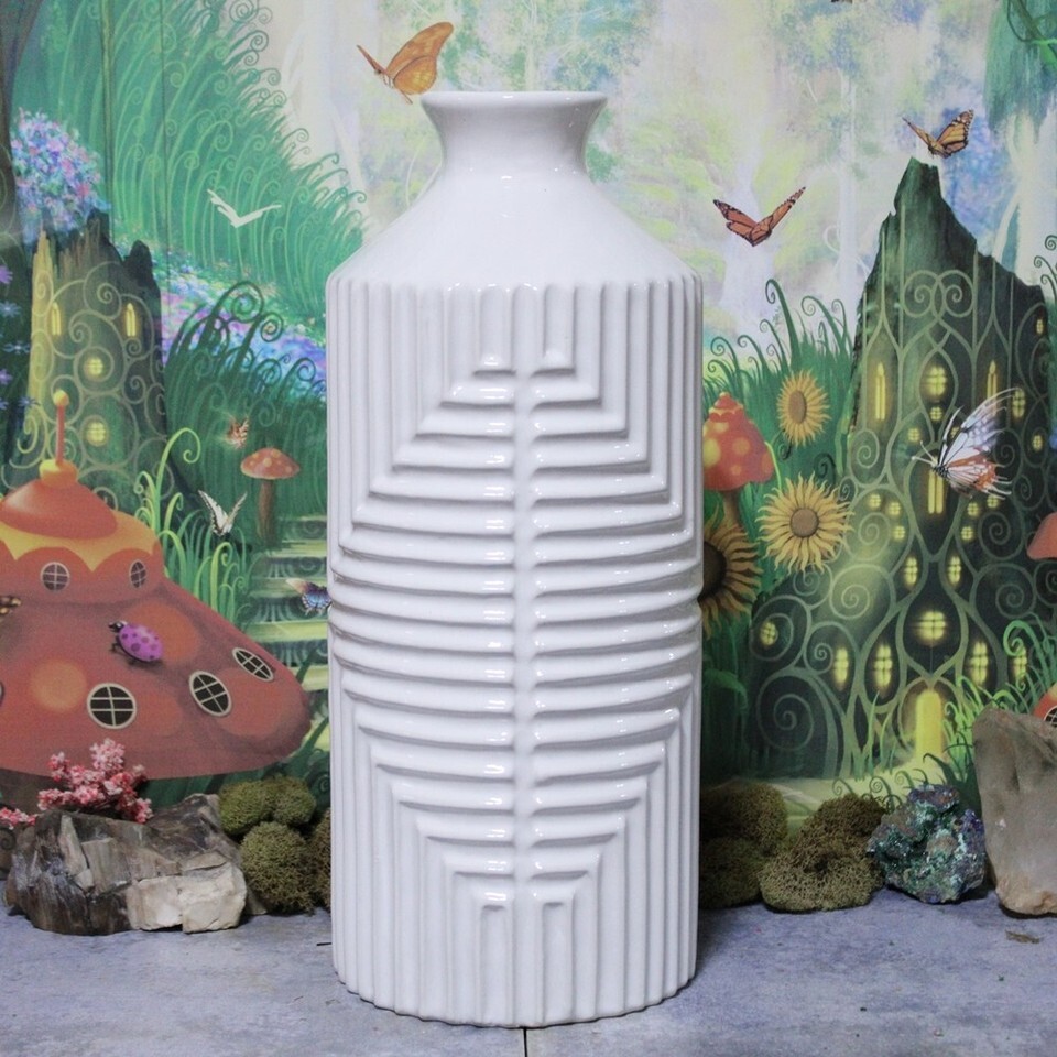 White Ceramic Vase for Flowers Large H = 14.25-inch Collectible