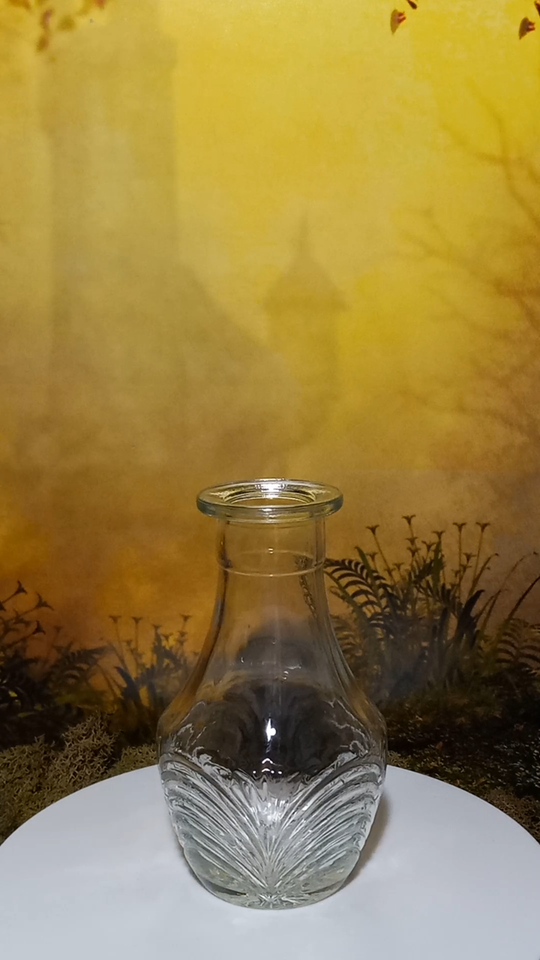 Small Clear Glass Wave Design Collectible Round Bud Vase Height = 5.5 inches