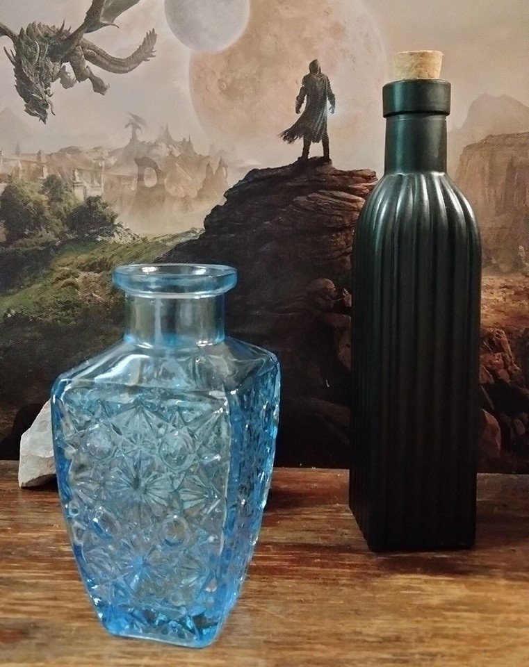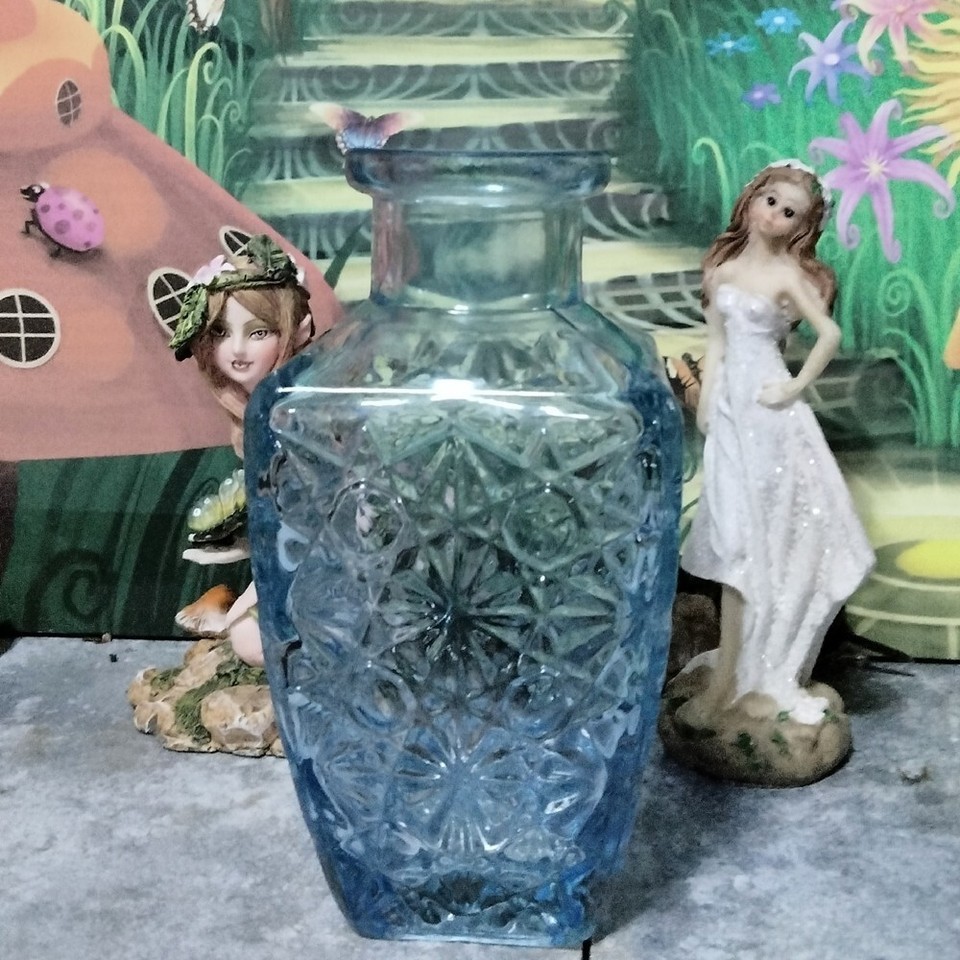 Blue Star Cut Vintage Style Colored Glass Square Decorative Bud Vase H = 5.25 in