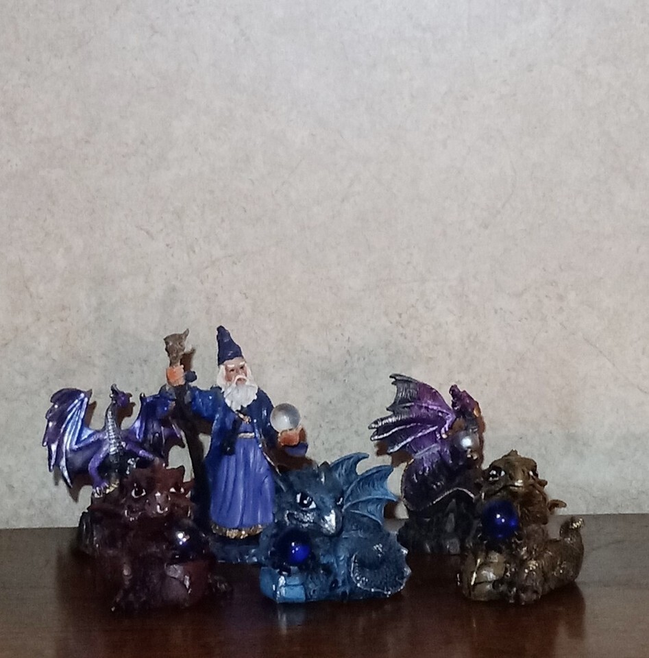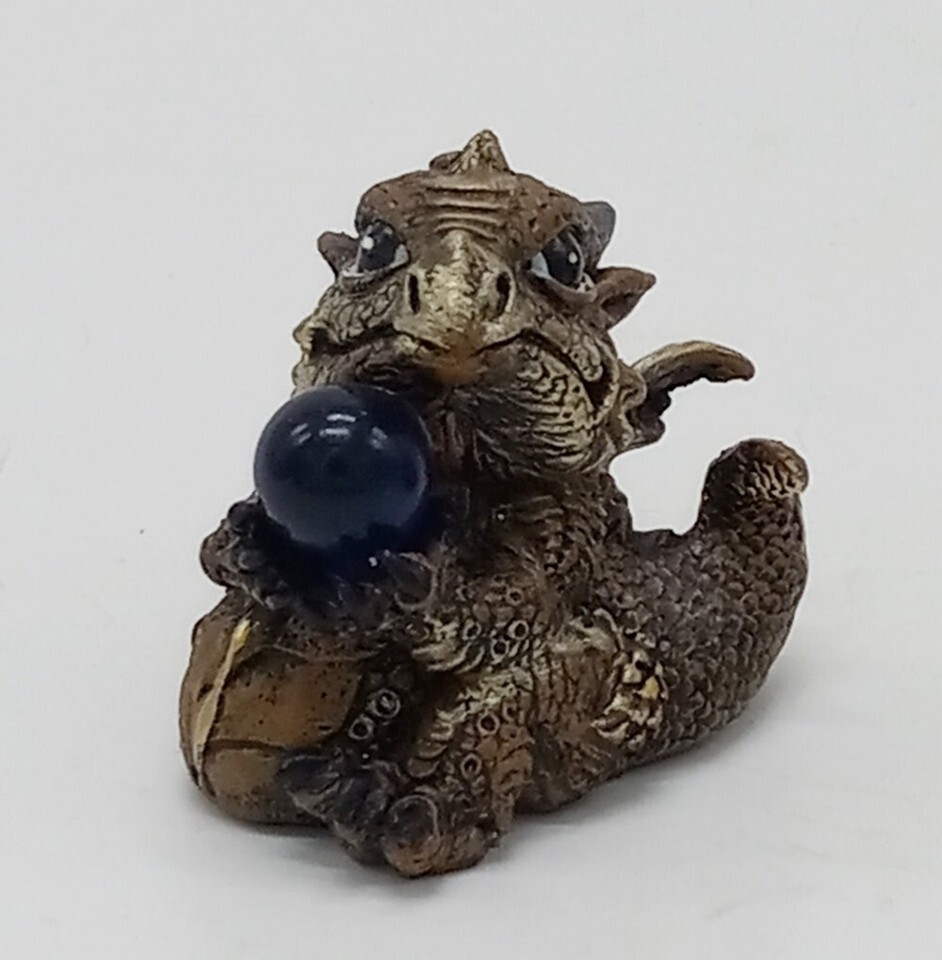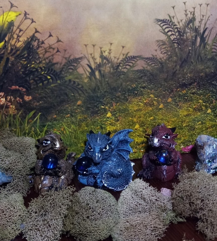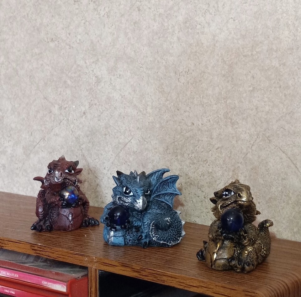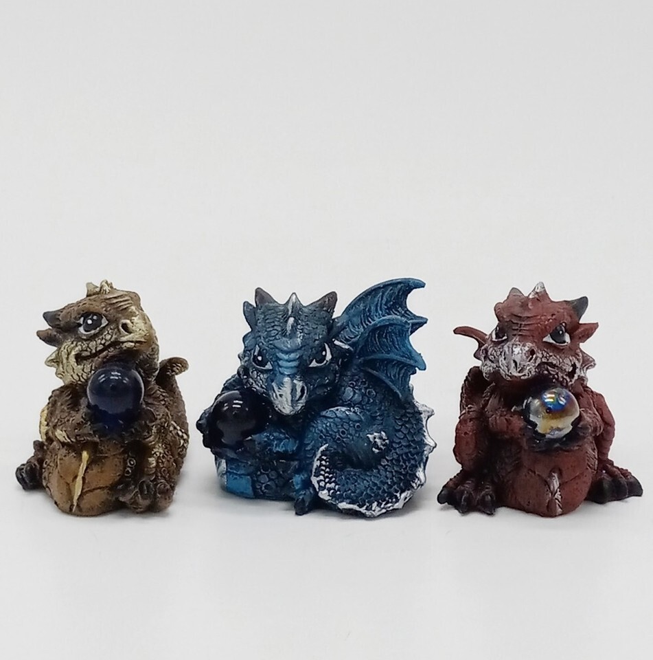 Mini Set of 3 Red Brown Blue & Brown Baby Dragons Holding an Orb Collectible